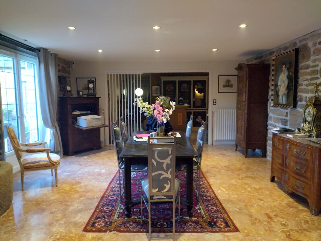 La demeure est composée, sur le rez de chaussée, par un double salon avec une grande cheminée; 2 cuisines équipées dont une séparée et privative avec une chambre et salle de de douche; une chambre avec salle de bains et toilettes et une chambre avec salle de douche et toilettes.