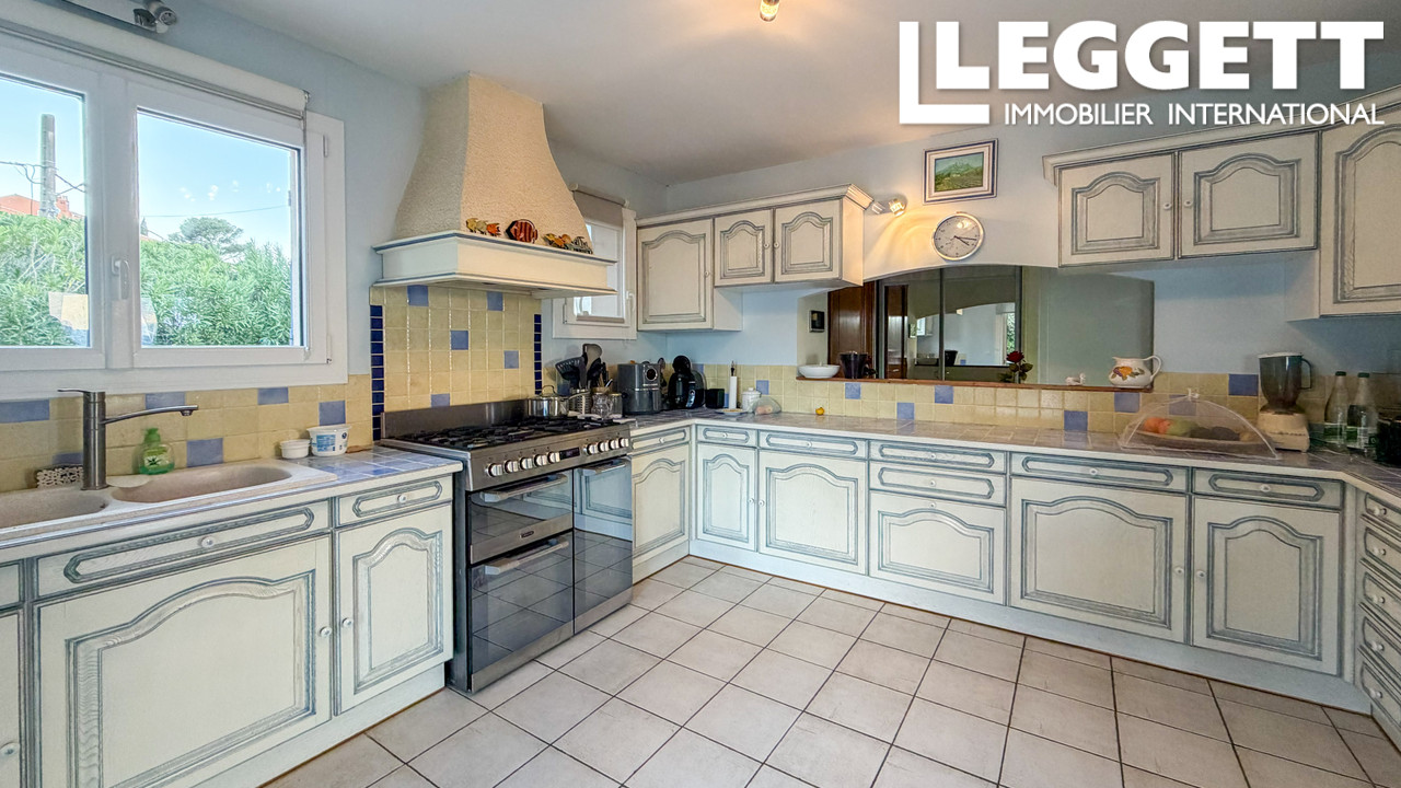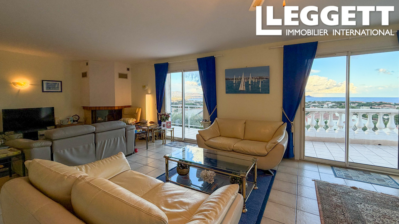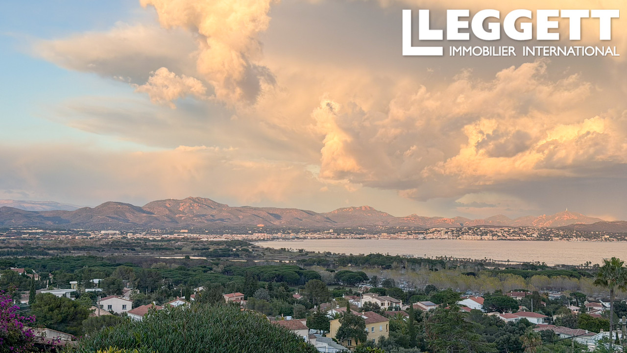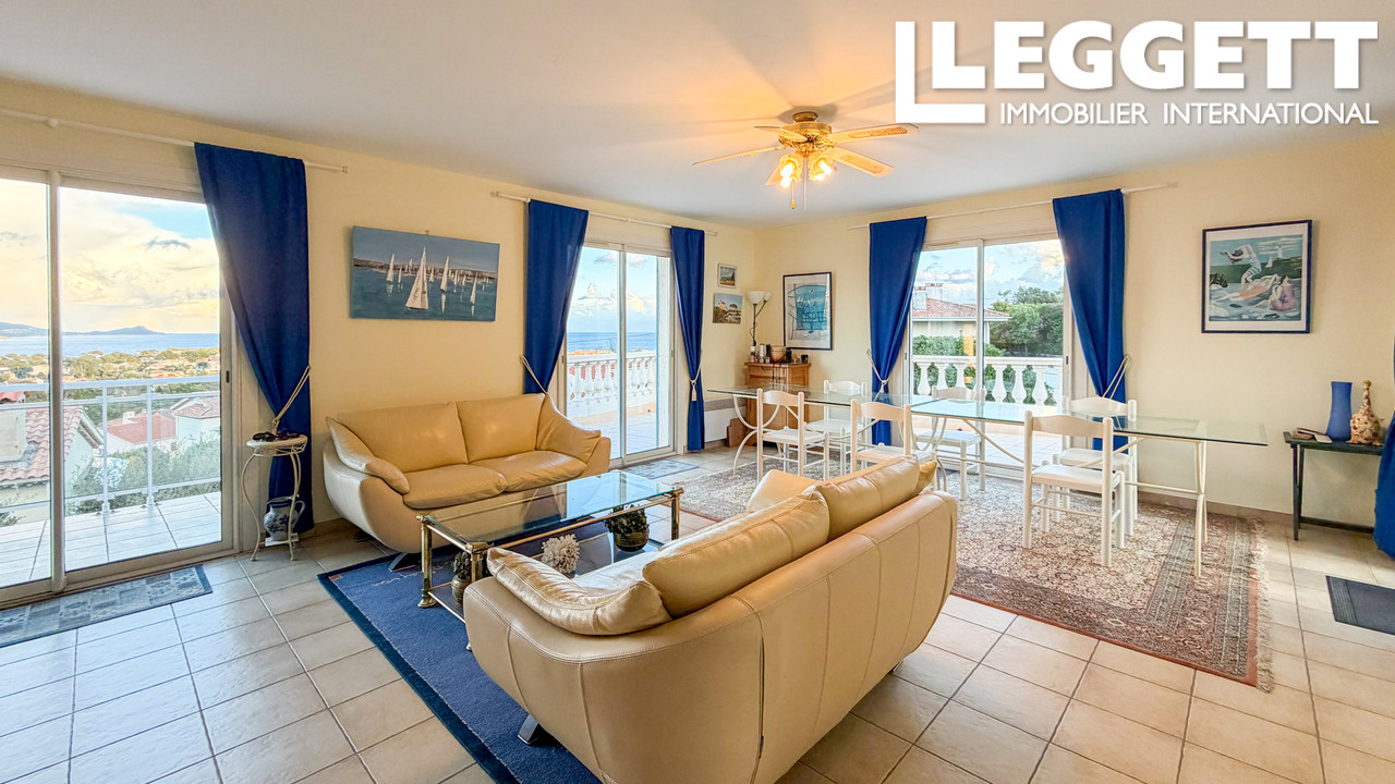 A41463JTO83 - Spacieuse villa avec vue sur la mer à Fréjus, avec un salon lumineux et une terrasse panoramique donnant sur la Méditerranée et les montagnes environnantes. Le niveau principal comprend un grand salon avec cheminée, une cuisine avec portes donnant sur la terrasse et la piscine, 4 chambres doubles et deux salles d'eau. Le rez-de-jardin comprend un appartement d'amis de 3 chambres avec accès indépendant, 2 salles de bains, un salon, une buanderie et le garage. Située sur un terrain de 1 110 m² facile d'entretien avec piscine et terrasses, la propriété comprend la climatisation, des panneaux solaires, un tout-à-l'égout et se trouve à seulement 5 minutes en voiture des plages locales.