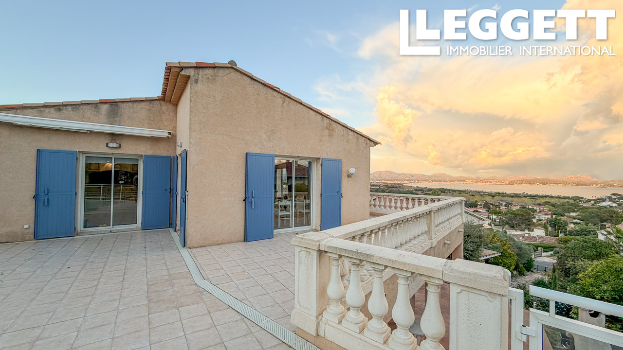 A41463JTO83 - Spacieuse villa avec vue sur la mer à Fréjus, avec un salon lumineux et une terrasse panoramique donnant sur la Méditerranée et les montagnes environnantes. Le niveau principal comprend un grand salon avec cheminée, une cuisine avec portes donnant sur la terrasse et la piscine, 4 chambres doubles et deux salles d'eau. Le rez-de-jardin comprend un appartement d'amis de 3 chambres avec accès indépendant, 2 salles de bains, un salon, une buanderie et le garage. Située sur un terrain de 1 110 m² facile d'entretien avec piscine et terrasses, la propriété comprend la climatisation, des panneaux solaires, un tout-à-l'égout et se trouve à seulement 5 minutes en voiture des plages locales.