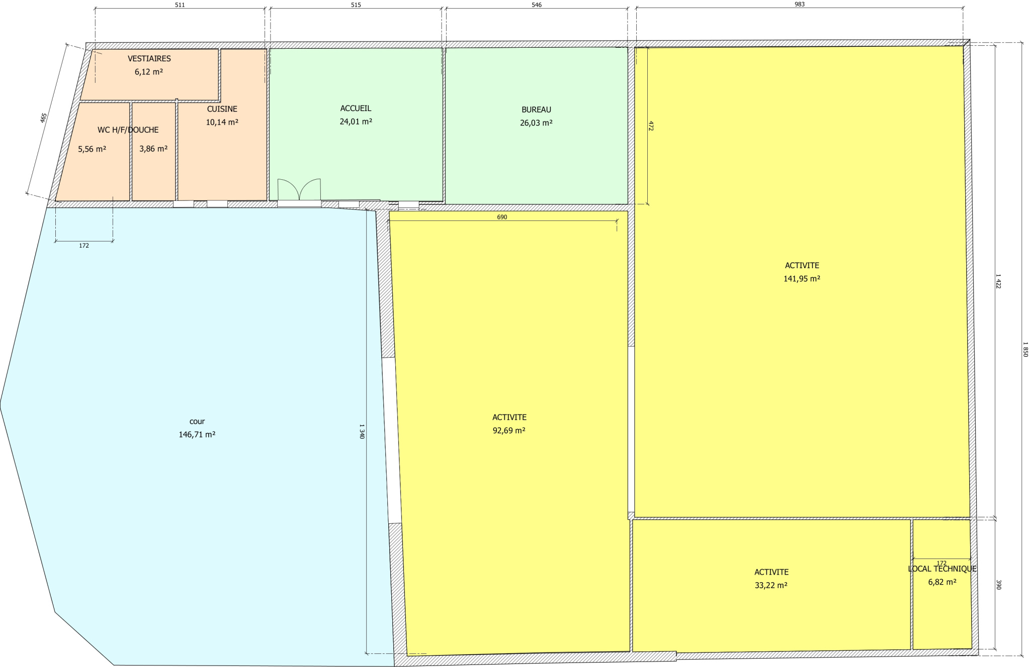 La Norville (91), nous vous proposons un local d'activité de 350 m2 sur 516 m2 de terrain clos. Ces locaux sont constitués d'une cour de manoeuvre de 147 m2, 280 m2 de surface d'activité avec belle hauteur sous plafond, et 70 m2 de bureaux et sanitaires.