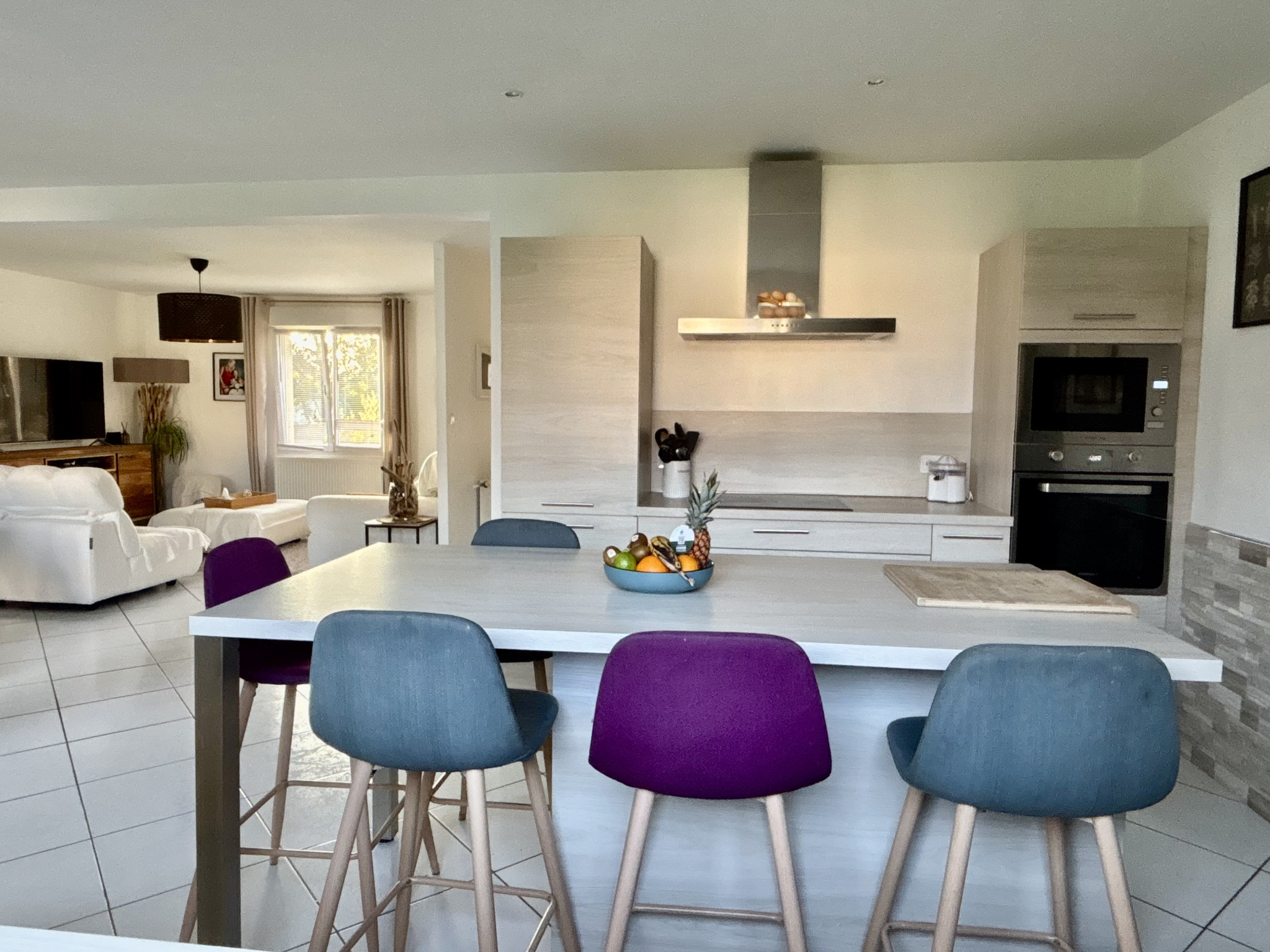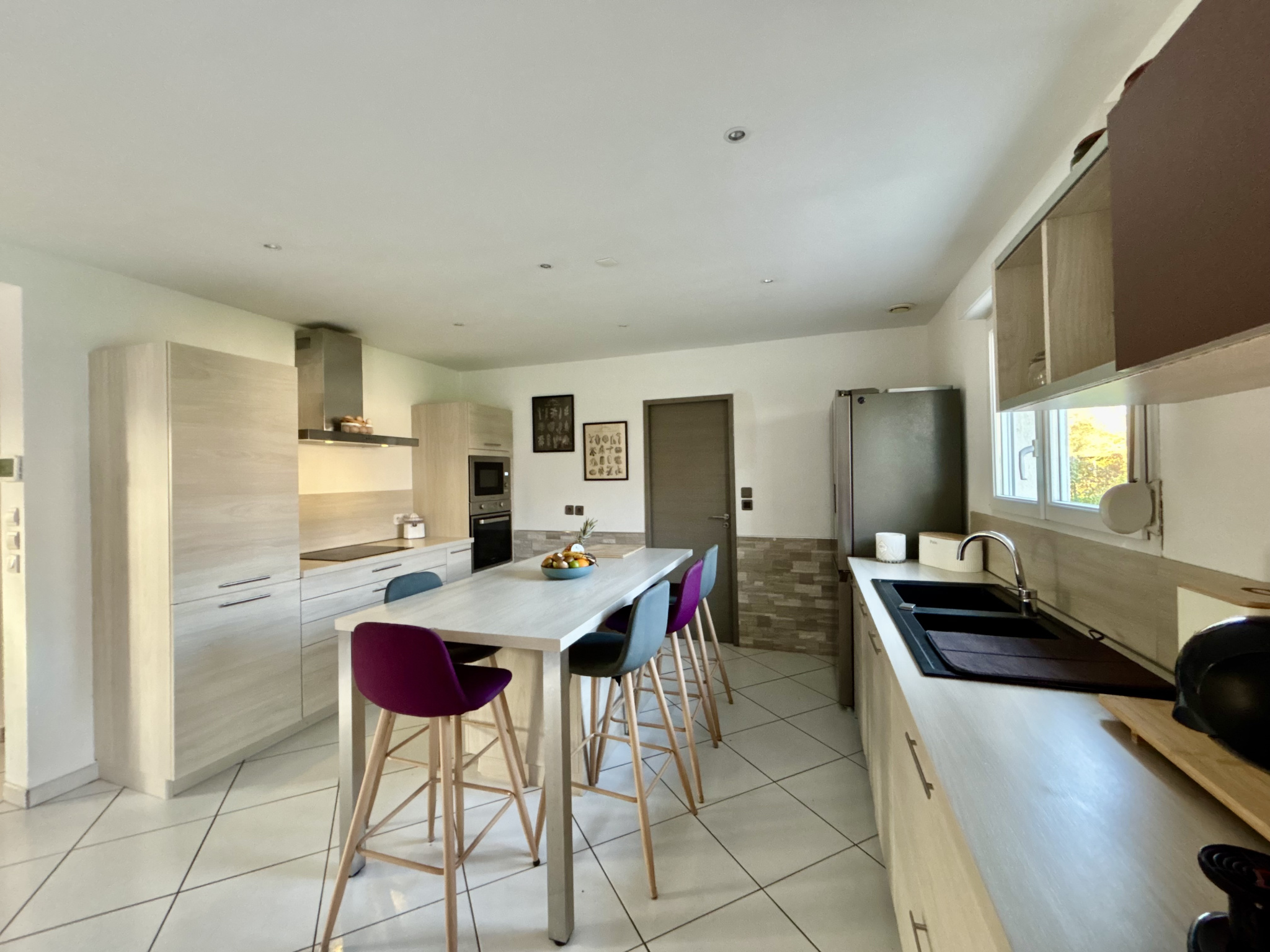 Spacieuse Maison lumineuse de 168 m2 sur un terrain arboré et clos de 1295m2 offrant : 6 Chambres dont une avec dressing, 2 Salles de Bain, 2 toilettes, séjour avec cuisine ouverte et équipée de 53m2