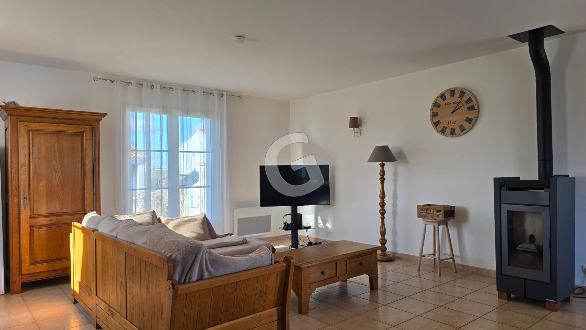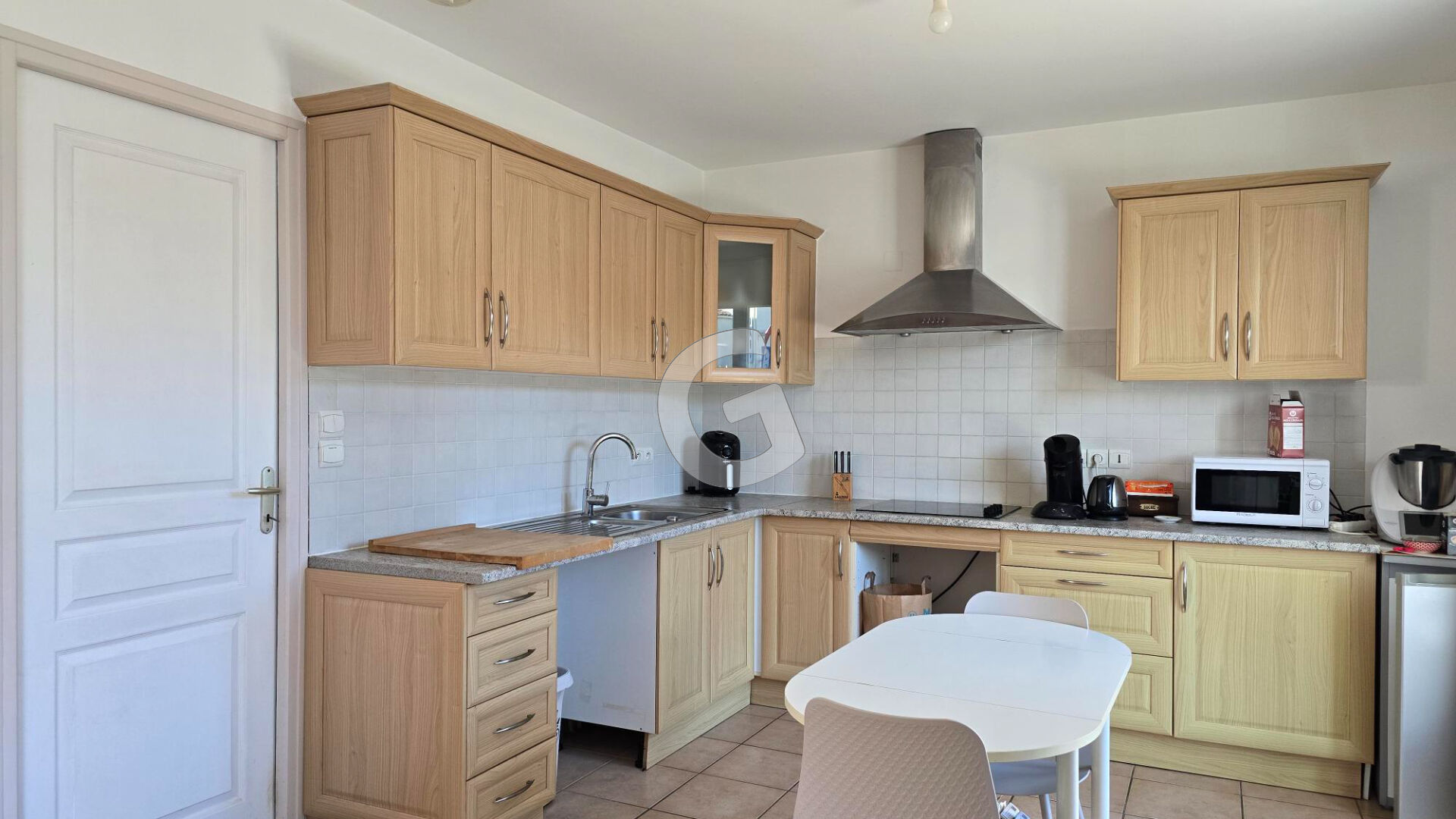 Maison de 108 m² construite en 2007, comprenant une pièce de vie de 55m² équipée d'un poêle à granulés et d'une cuisine ouverte aménagée. Un couloir mène à trois chambres, dont deux avec placard intégré, ainsi qu'à une salle de bain comprenant une douche et un placard et un wc séparé.