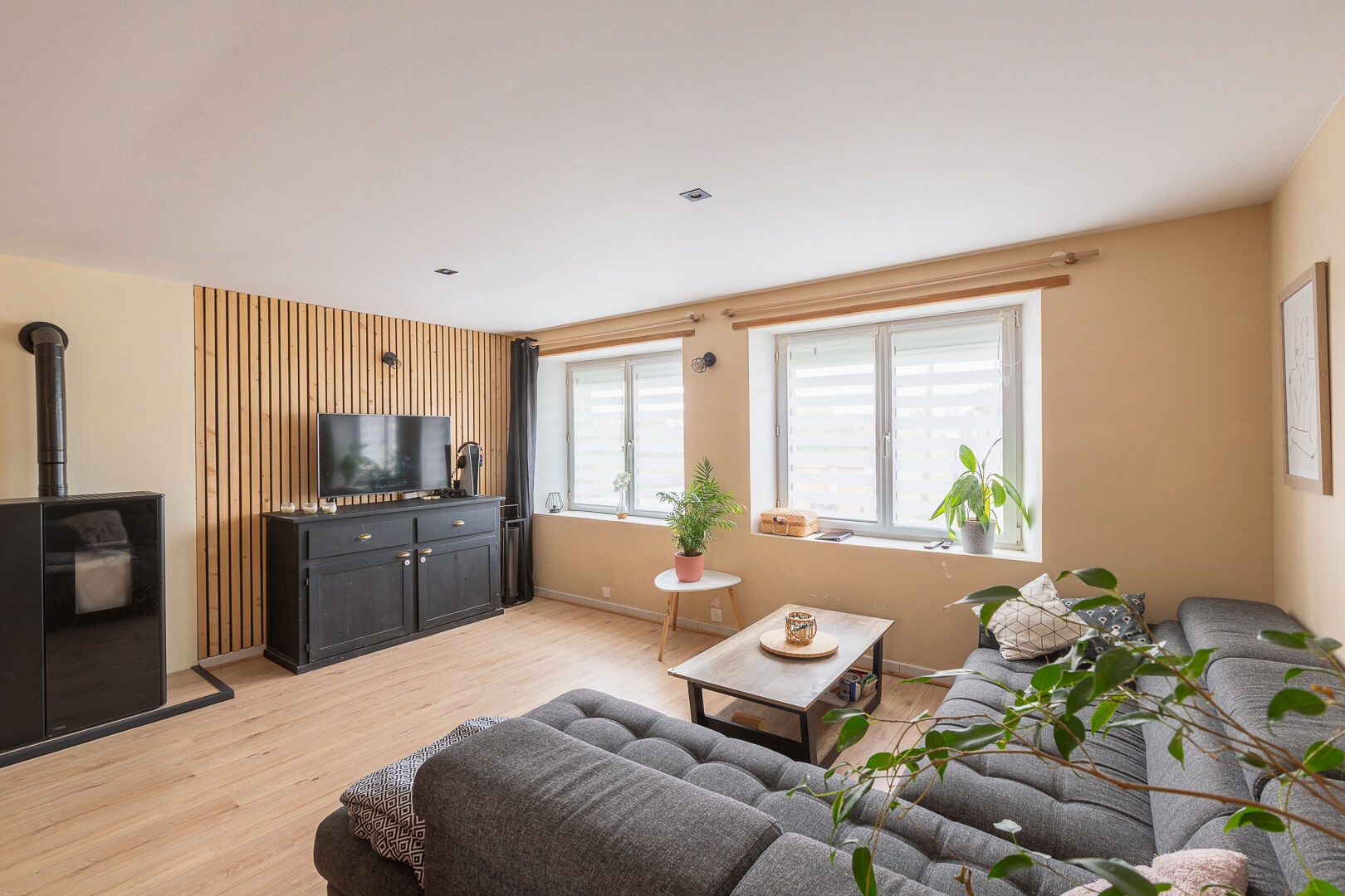 Au rez-de-chaussée, une belle cuisine aménagée et équipée s'ouvre sur un séjour-salon chaleureux, agrémenté d'un poêle à granulés récemment installé. Une chambre avec coin buanderie ? facilement aménageable en salle d'eau ? permet d'envisager la vie de plain-pied.