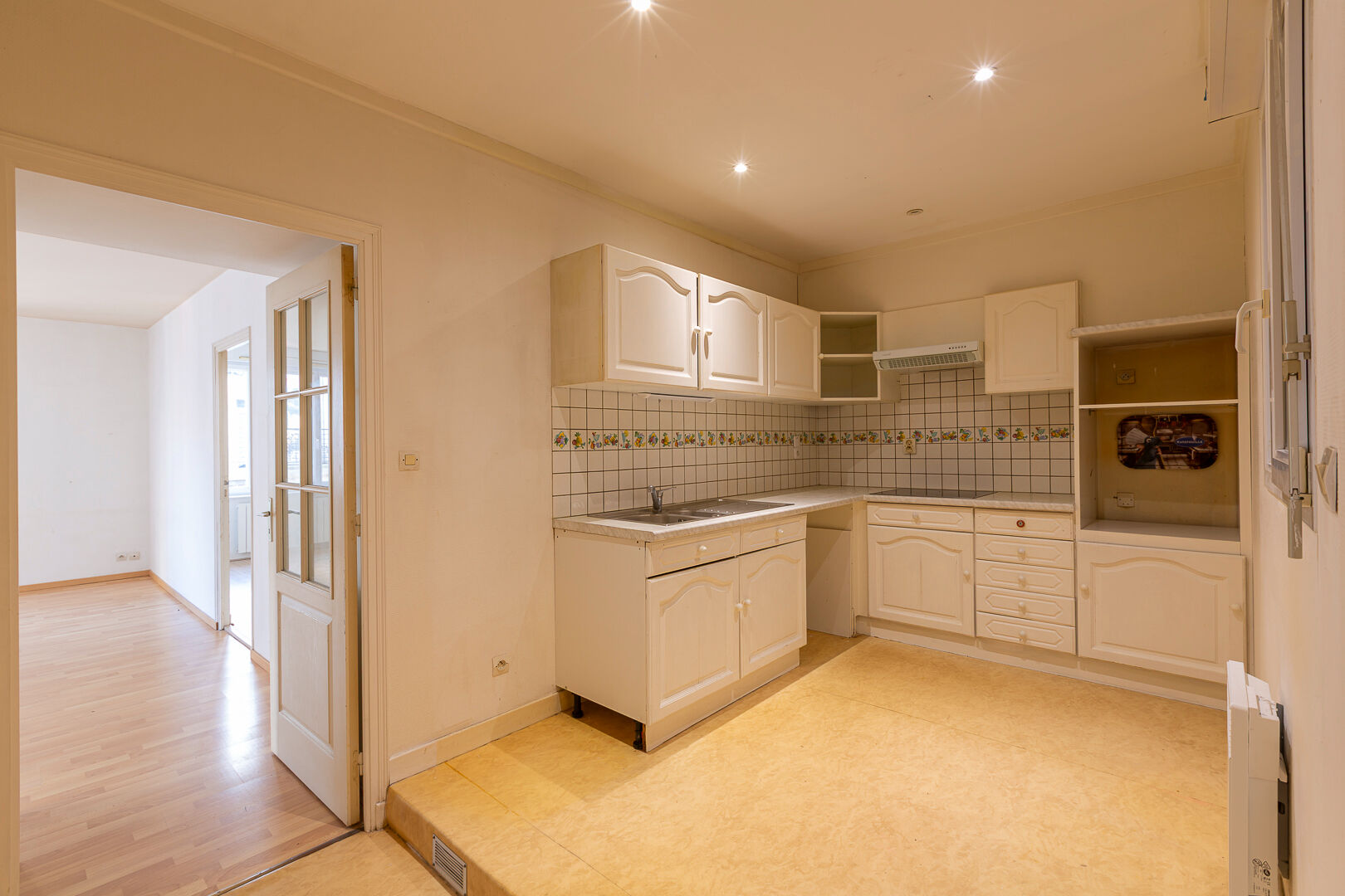 Situé au 2e étage d'une copropriété entièrement rénovée, ce 77 m² offre une belle pièce de vie lumineuse sur parquet, à l'angle du bâtiment, avec vue dégagée et hauteur sous plafond. Cuisine indépendante.