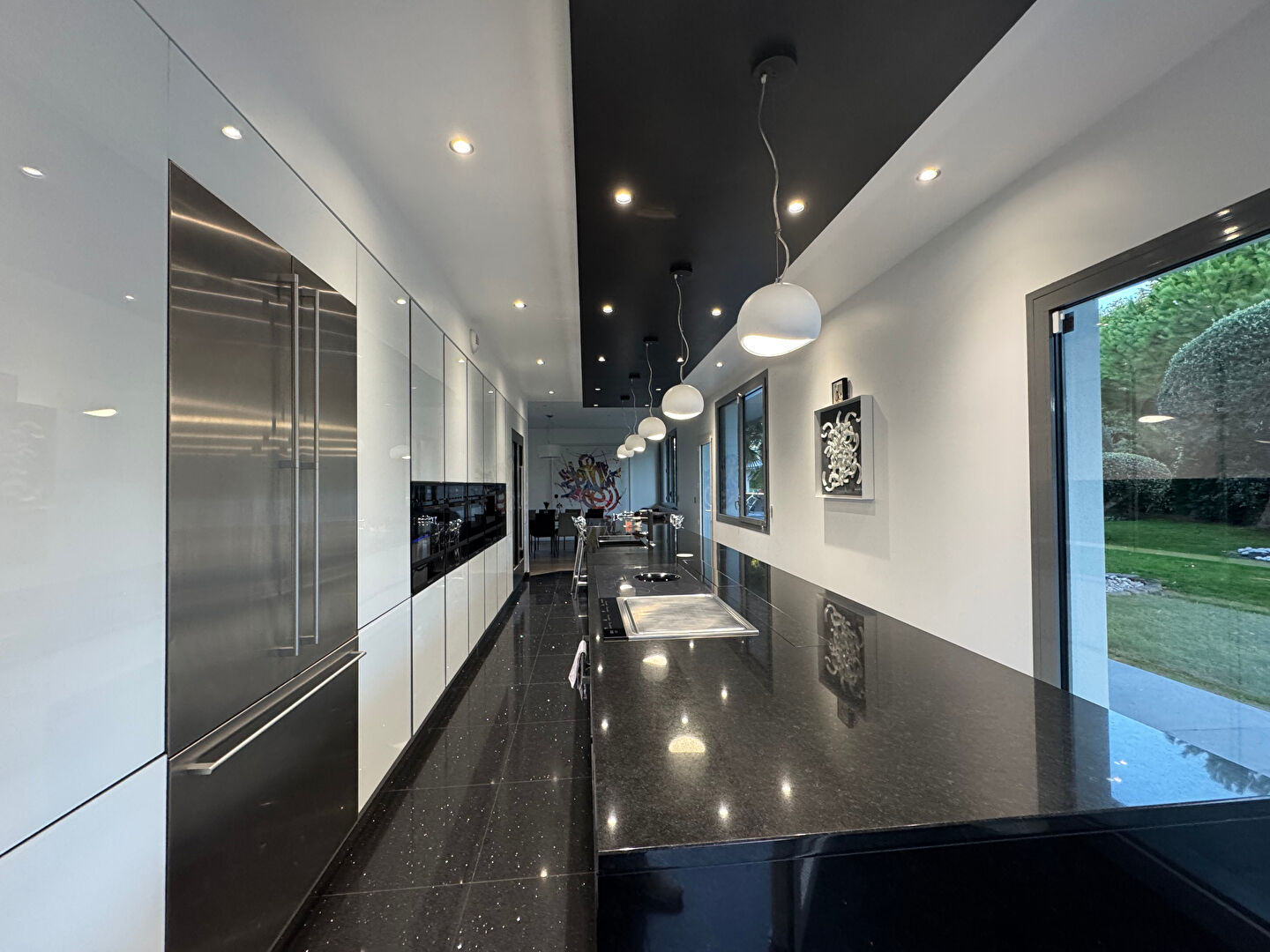 Dès l'entrée, les volumes généreux et la luminosité naturelle séduisent. Le séjour cathédrale et sa mezzanine élégante s'ouvrent sur un magnifique jardin avec piscine scintillante, paillotes balinaises et espaces de détente propices à l'évasion.