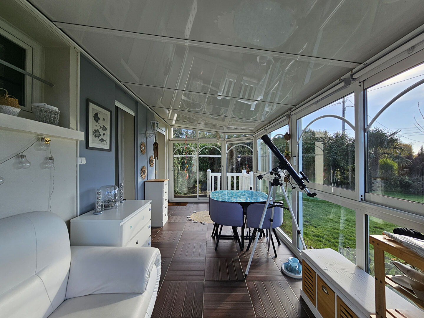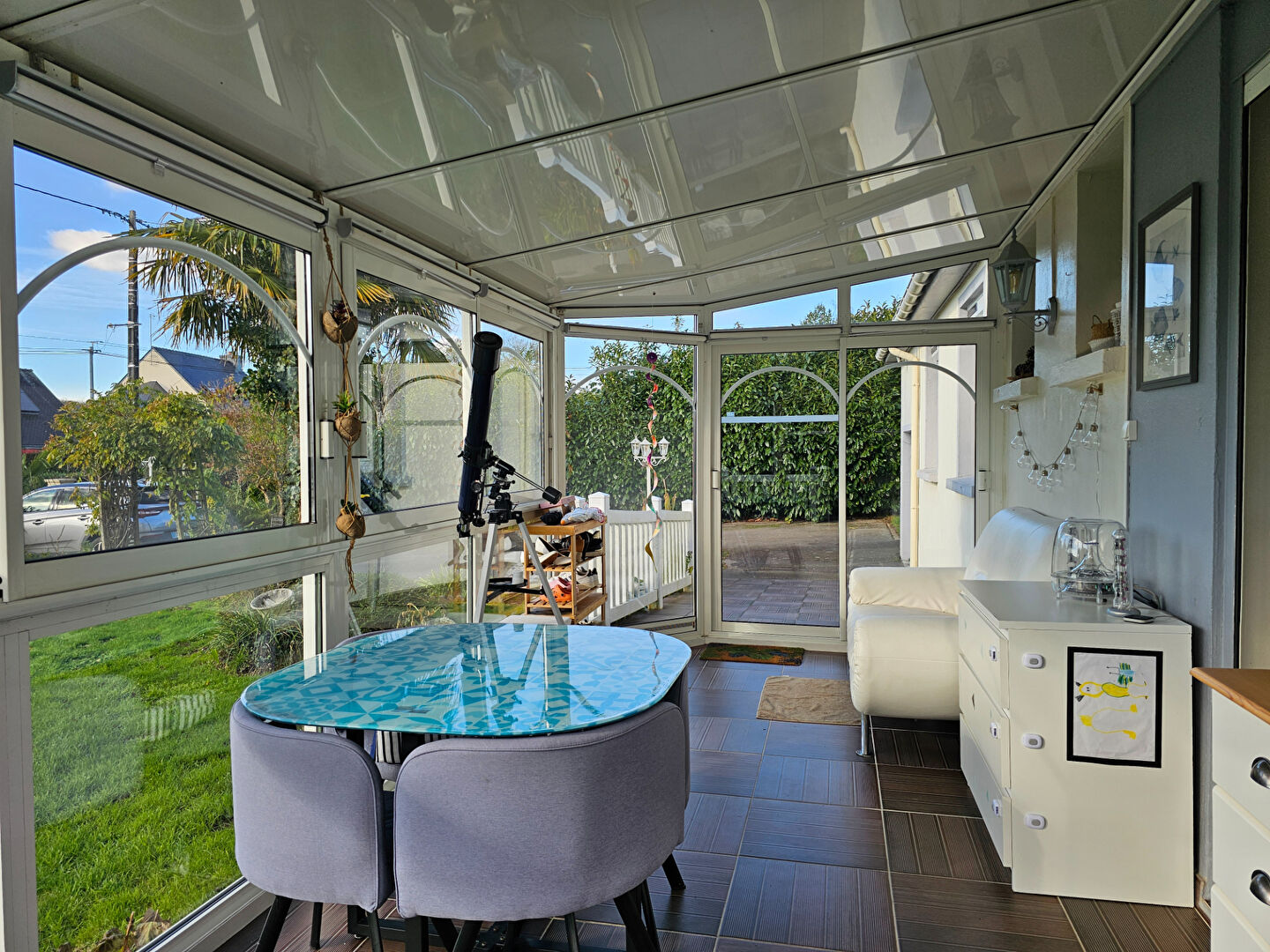 Le bien comporte aussi une véranda en alu double vitrage exposée SUD-OUEST, un garage (22m²) avec portail électrique et son grenier, une terrasse (35m²), une cour, des dépendances, un vaste jardin, un terrain de pétanque.