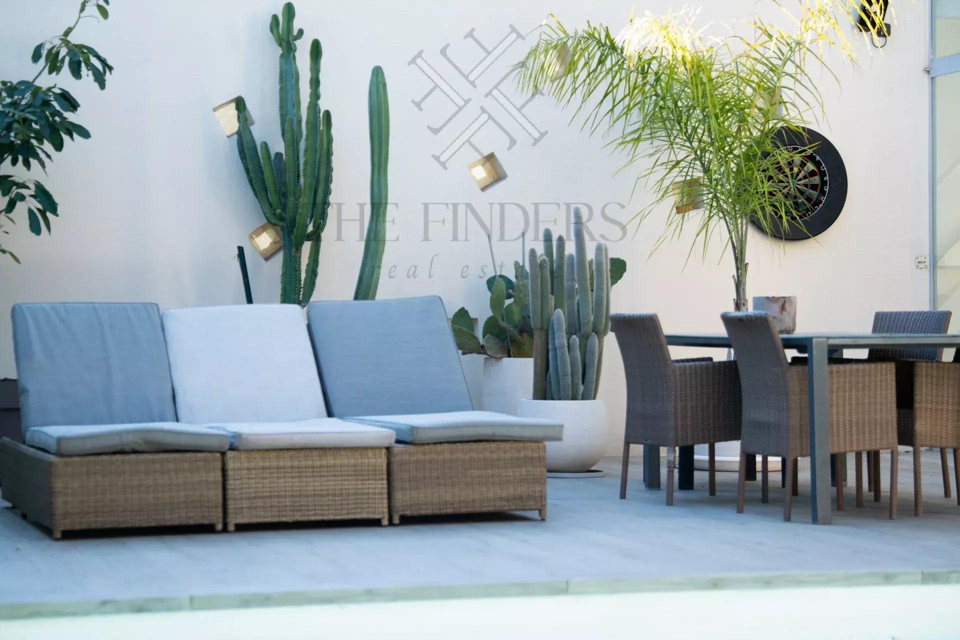 L'ensemble s'organise autour d'un patio central doté d'une piscine à l'abri des regards, surplombé par un rooftop offrant une vue dégagée sur les plages emblématiques de Pampelonne.