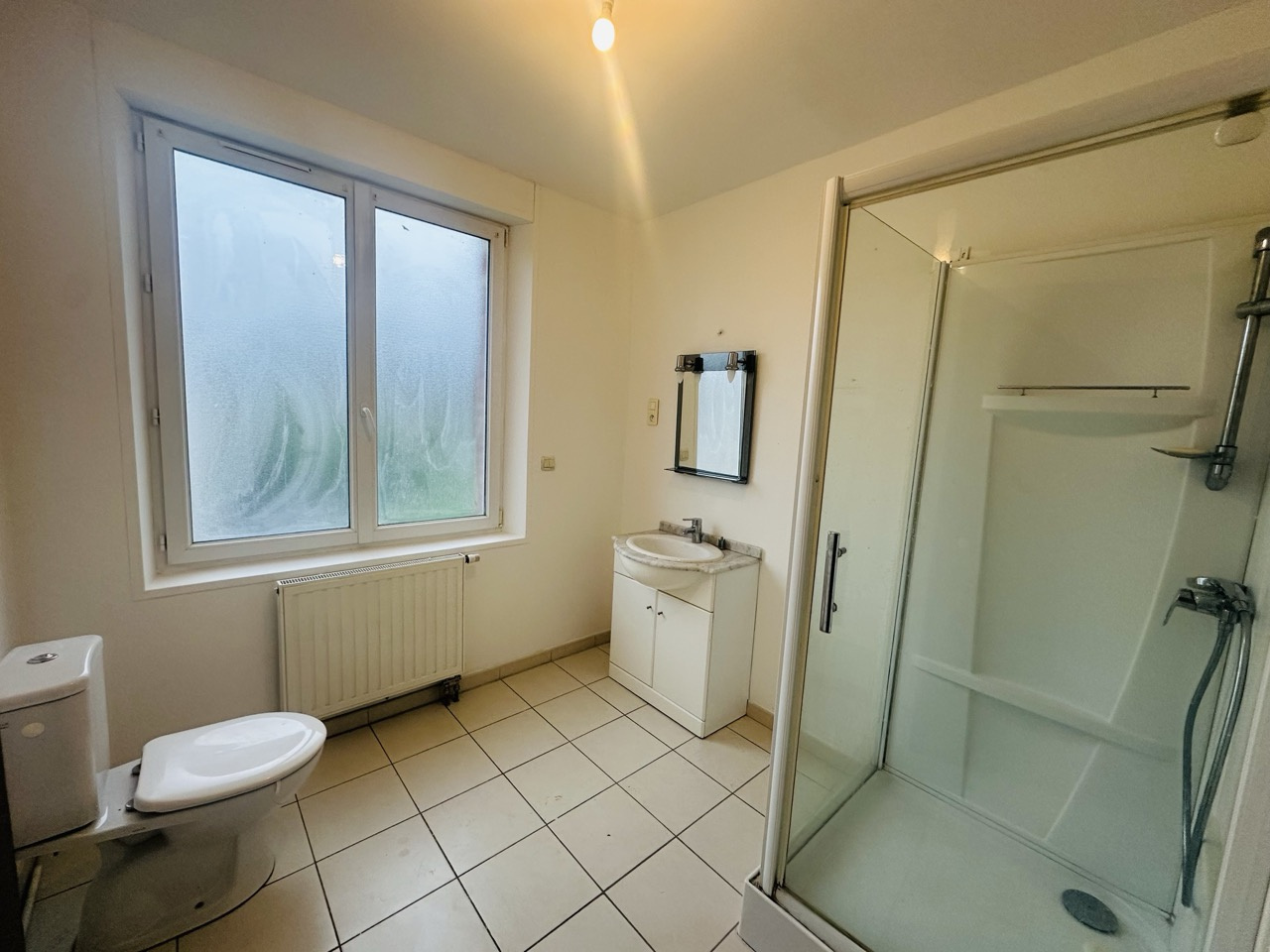 A l'étage: palier desservant deux chambres, une salle d'eau avec WC.