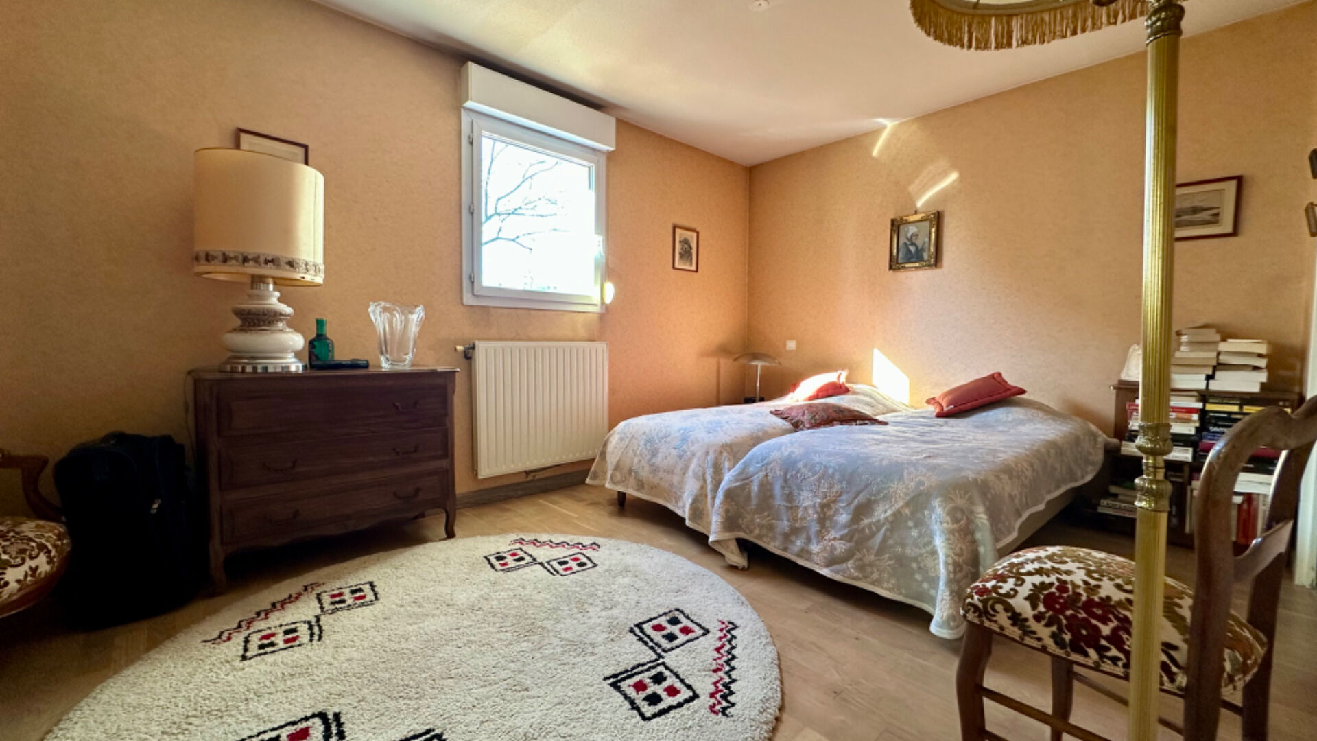 A l'étage, 2 chambres dont une avec placard et des espaces sous combles aménagés pour rangement, un bureau confortable permettant d'accueillir une chambre d'enfant, une salle d'eau et WC séparés.