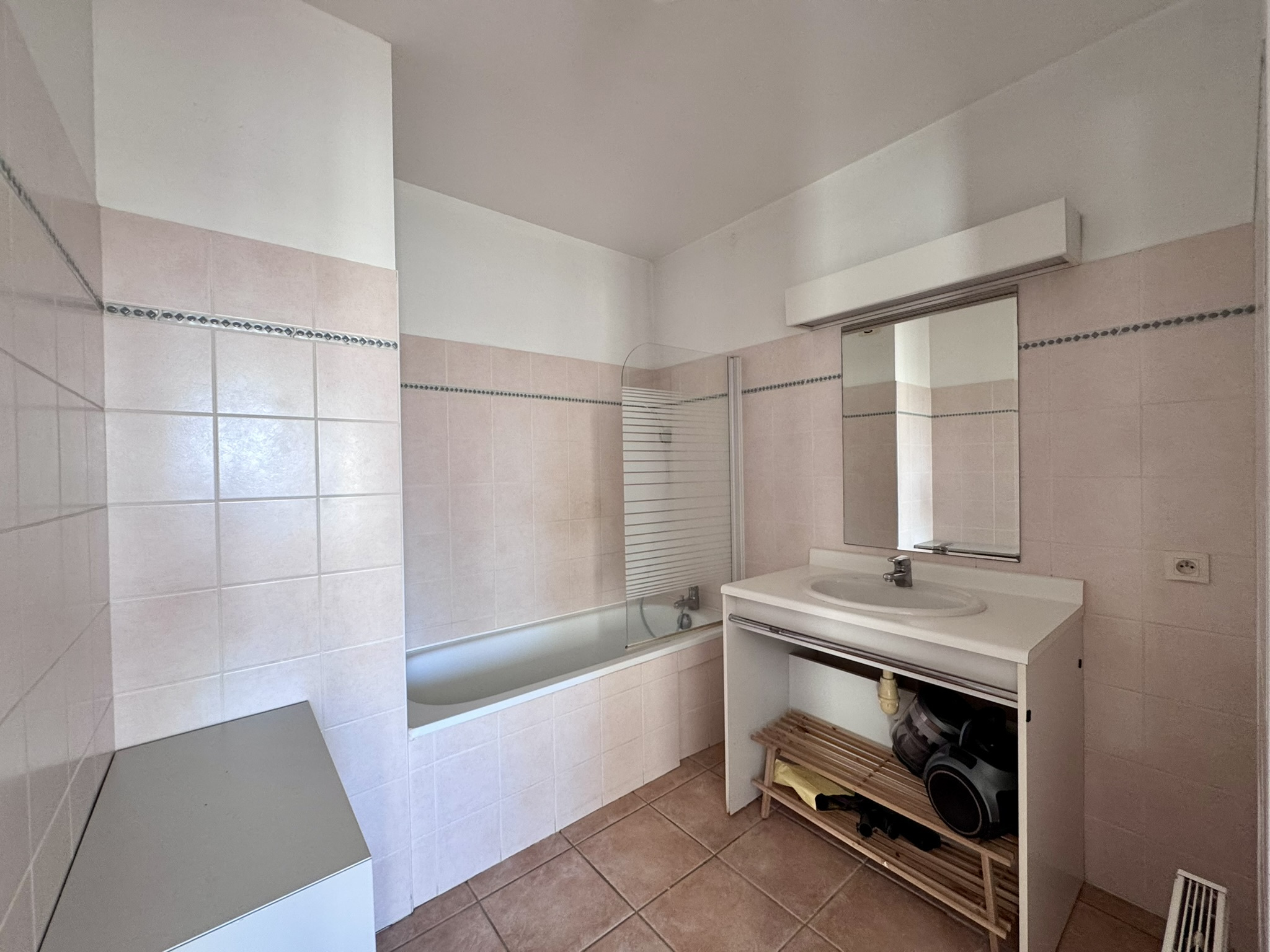 A seulement cinq minutes à pied du centre, dans résidence sécurisée avec ascenseur, au troisième et dernier étage lumineux appartement de type T2 d'une superficie d'environ 49.05M2 comprenant, un séjour de 16M2, cuisine indépendante de 8.9M2, chambre (11,6M2), salle de bains, wc. terrasse de 5M2, place de stationnement privative