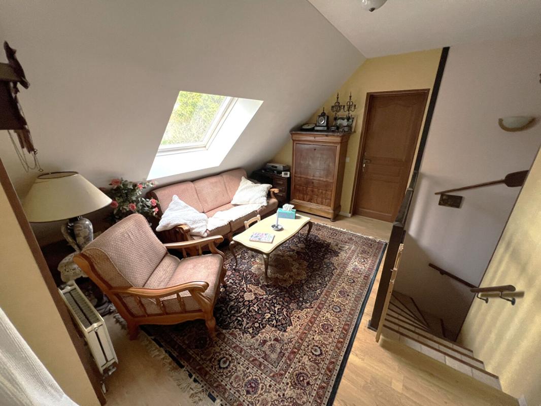 - A l'étage: un palier donnant sur 2 grandes chambres (environ 14 et 15m2 habitables), une salle de douche avec wc, et une mezzanine donnant sur le séjour cathédrale (idéale pour une bibliothèque et un coin lecture)