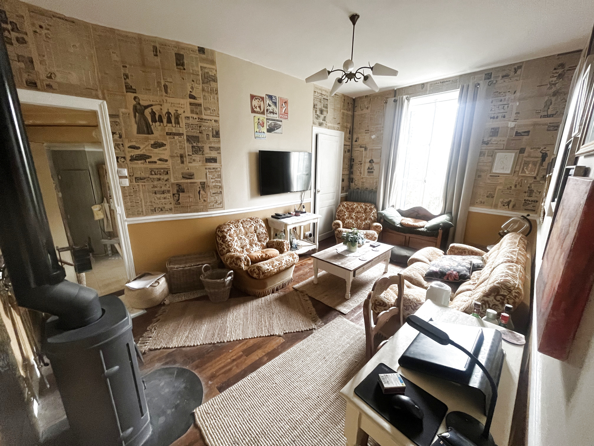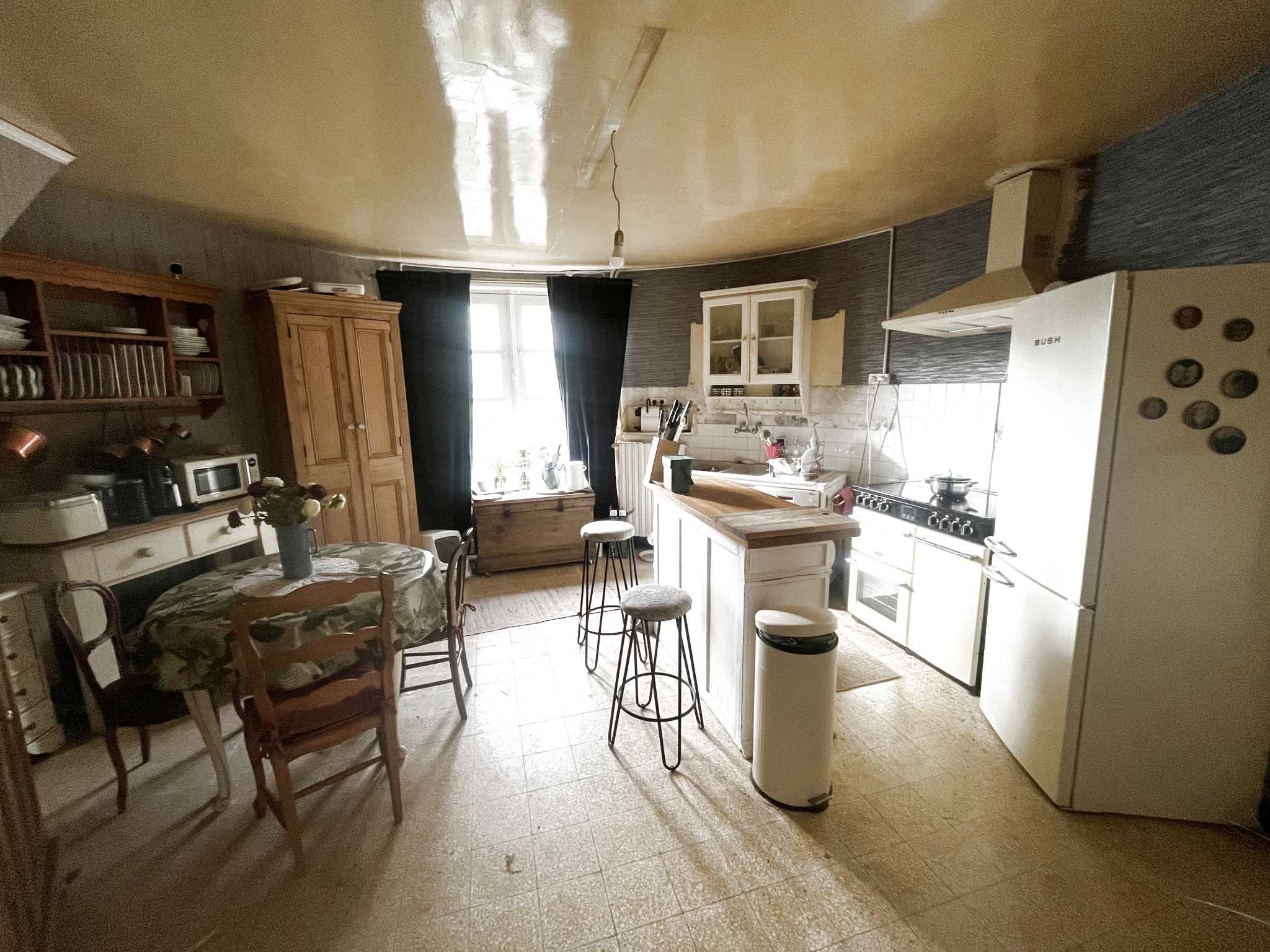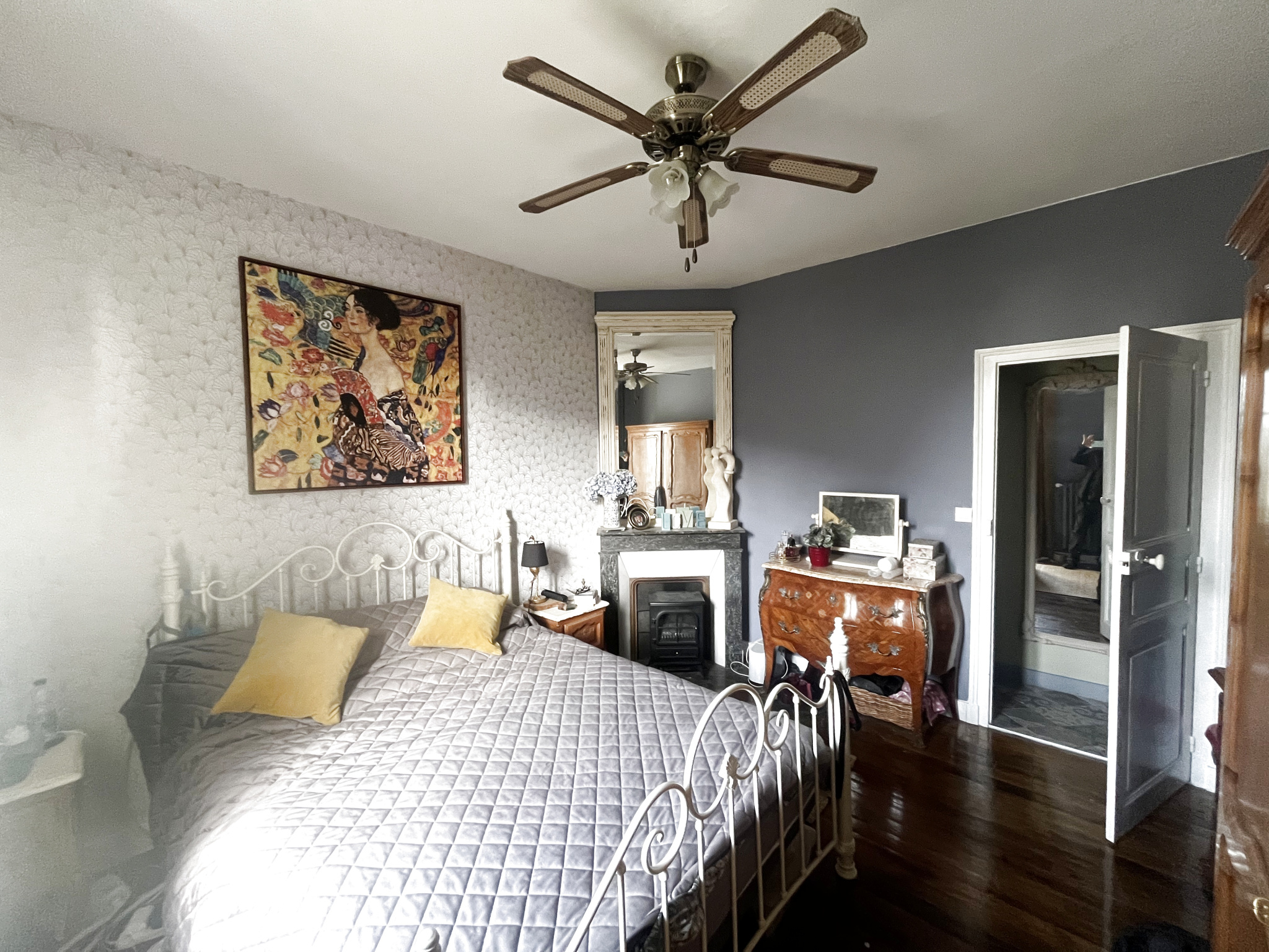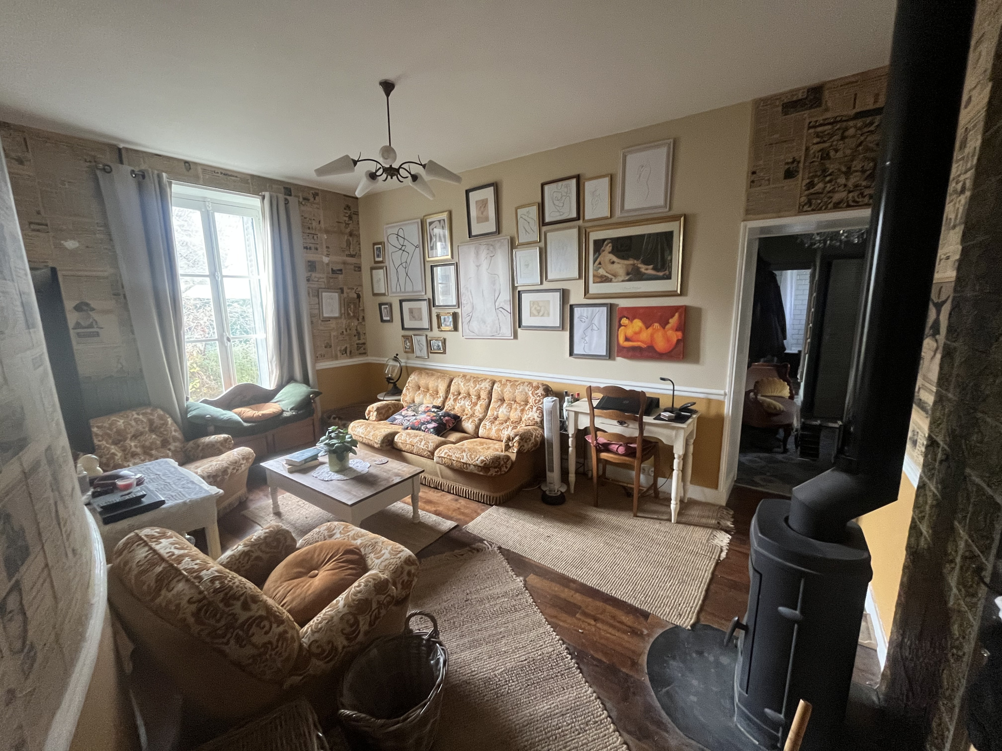Propriété de caractère sur un terrain de 2744m2 comprenant : véranda, salle d'eau-wc-buanderie, cuisine aménagée, salon, deux chambres, salle de bain, wc