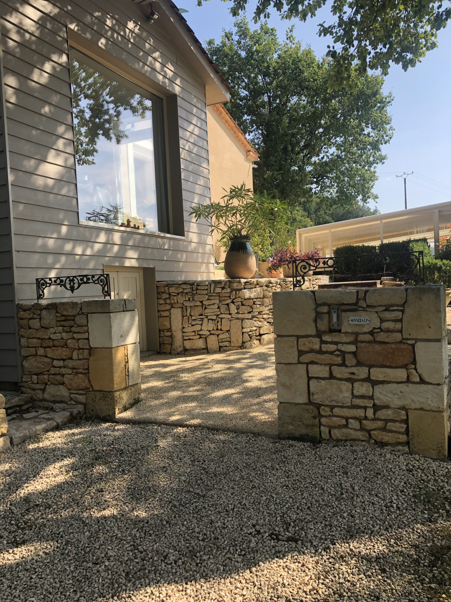 A l'autre bout de la proprieté un gite en pierre de 40 m2 sur les deux niveaux comprend une pièce de vie avec coin cuisine sortant sur une terrasse et à l'étage une chambre avec sa salle d'eau. Très indépendant et suffisamment loin de la maison principale il peut être facilement loué sans gêne de voisinage.