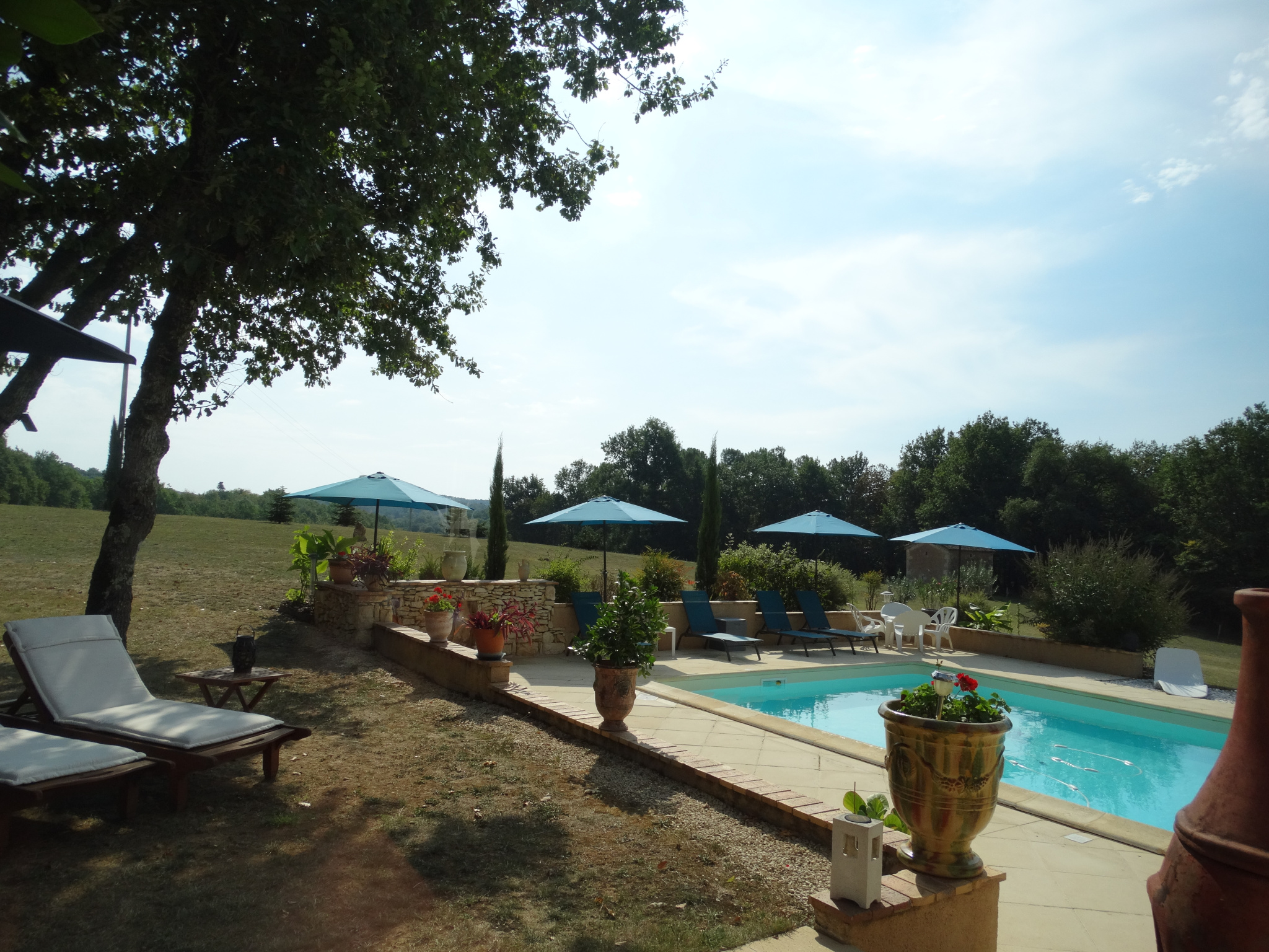 Au niveau inférieur et également de plain-pied une chambre indépendante avec sortie sur l'extérieur, sa salle de bain baignoire balnéo (marque Granform), salle de jeu de 35 m2. Garage, coin pool house, cave . Côté Est, très jolie terrasse couverte de 24 m2 avec sa cuisine d'été qui se prolonge par une terrasse ouverte (protégée du soleil par un store banne) sur la piscine.. La piscine recouverte d'un abri motorisé rétractable (éléments neufs) laissant la vue libre de sur la terrasse. Murettes, escaliers pierre, massifs agrémentent les abords proches de la maison, le reste du terrain (1 ha 40 en totalité) est planté de fruitiers, chênes truffiers, bosquet avec des essences locales et prairie. Il y a une vue différente à chaque coin de la maison (village, collines, campagne, vue lointaine) La maison est chauffée dans sa plus grande partie par un poêle de masse, la véranda par chauffage au sol électrique.