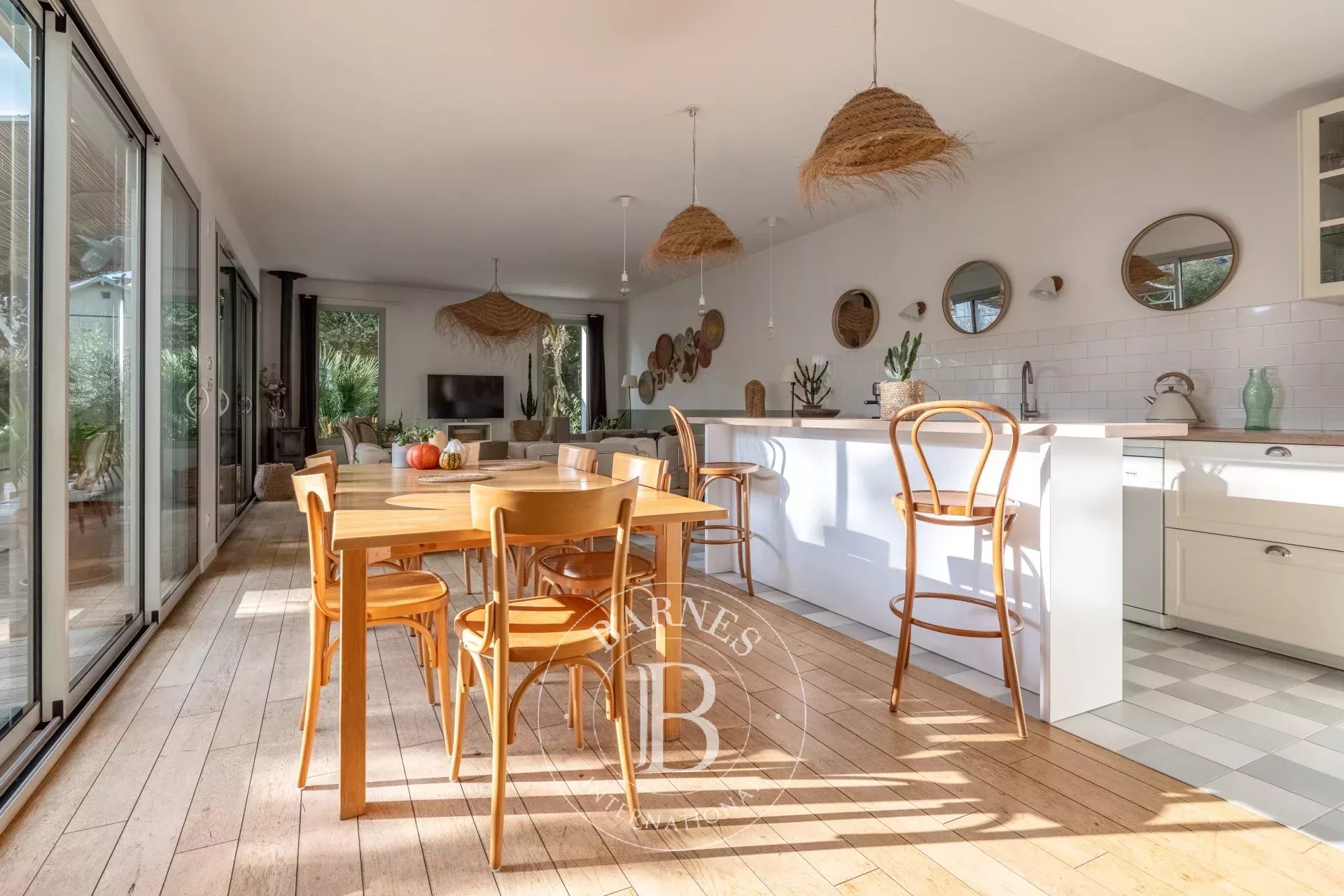 Elle comprend une belle pièce de vie exposée au sud, ouvrant par de larges baies sur le jardin avec piscine.