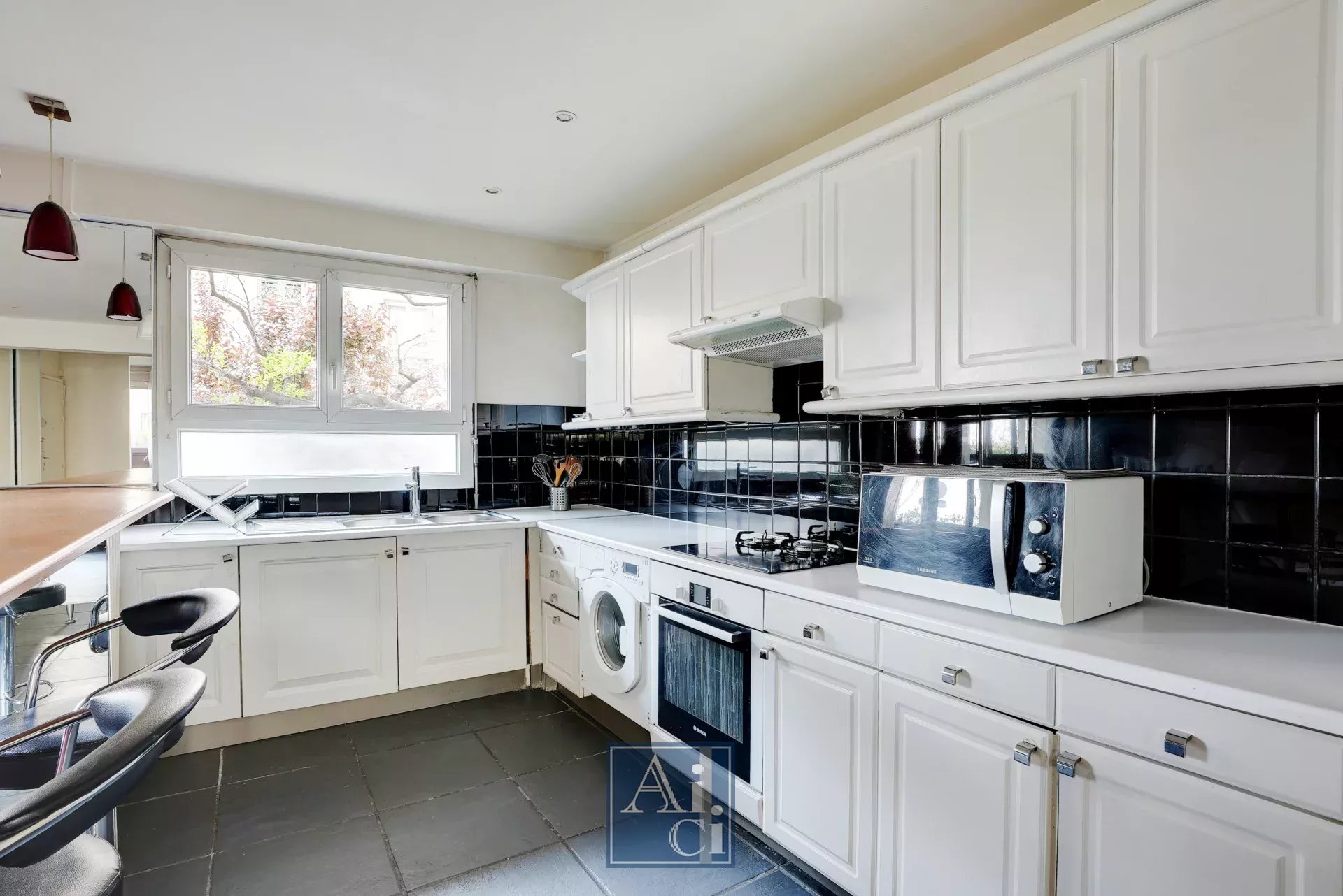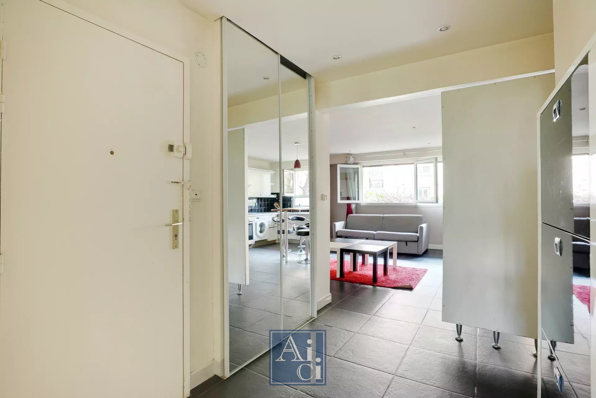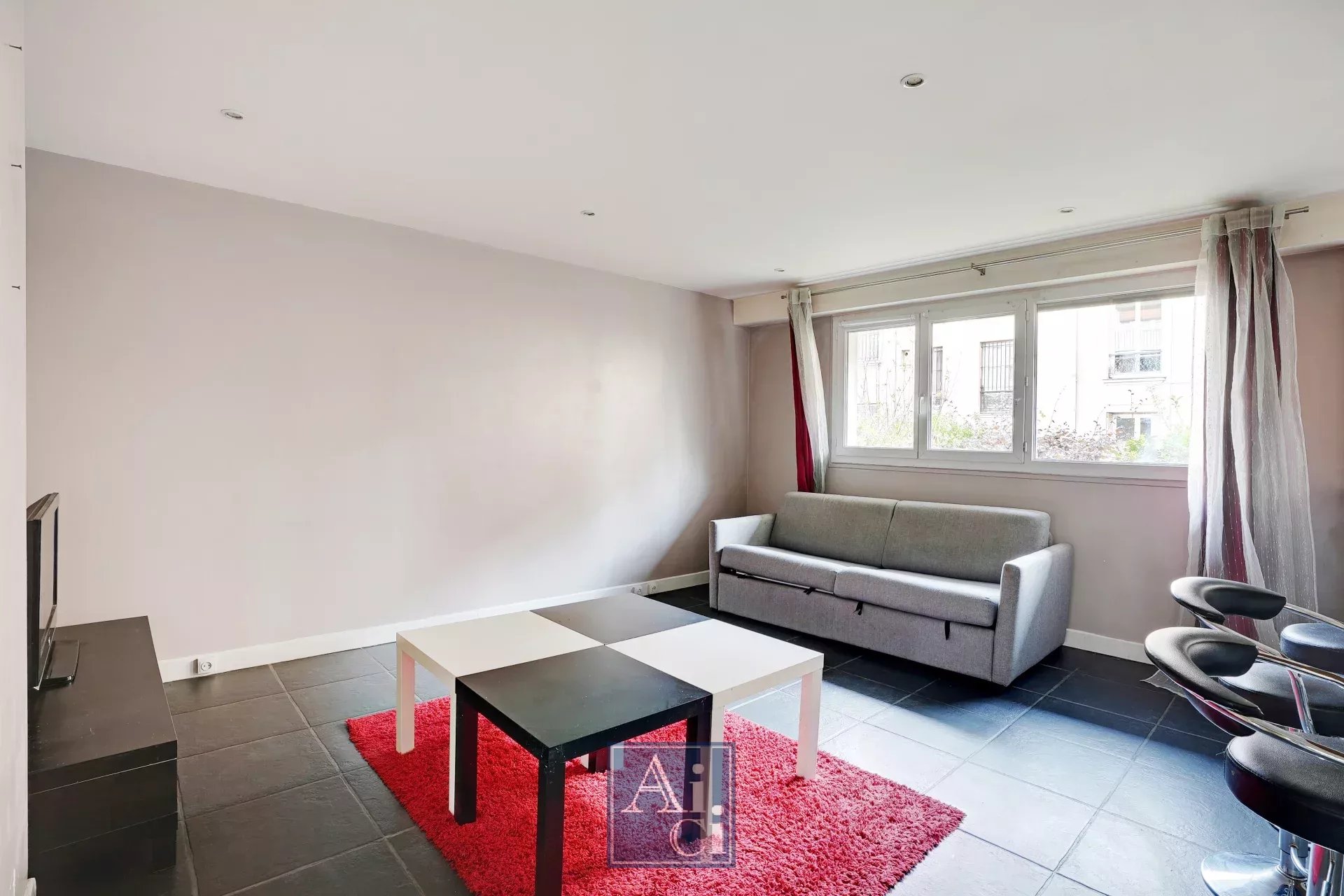Courbevoie proche Neuilly sur Seine. Proche de tous commerces et transports. au Rez-de-Chaussée d'un immeuble récent avec vidéosurveillance. grand deux pièces traversant ( sur jardin ) lumineux au calme.