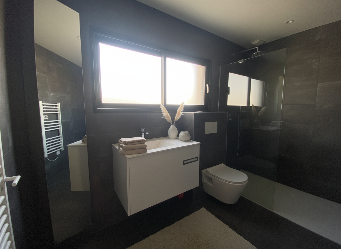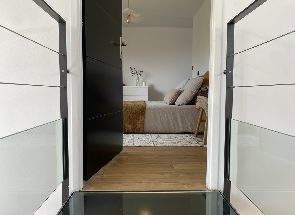 À l'étage, deux grandes chambres de 25 m2 chacune vous attendent, toutes deux équipées de dressings et de salles d'eau privatives signées PORCELANOSA. La conception architecturale de la maison a été pensée pour faire circuler la lumière naturelle à travers l'ensemble des espaces.