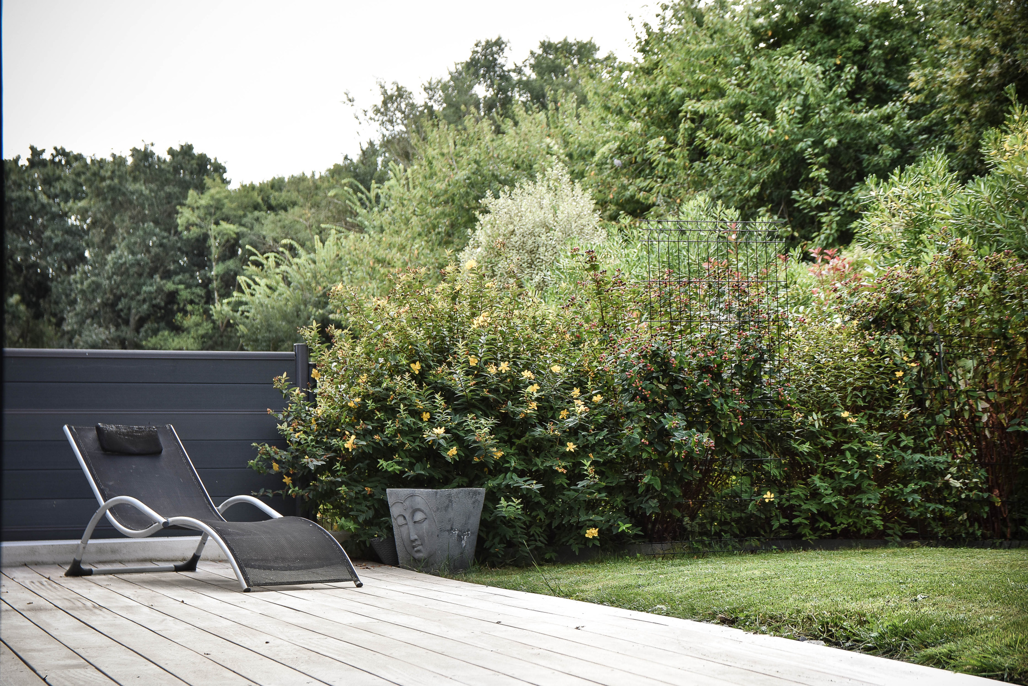 À l'extérieur, le jardin paysagé et le patio arboré créent un cadre intime et soigneusement aménagé. La pièce de vie et la terrasse sont exposées sud-ouest, idéales pour profiter pleinement des belles journées.