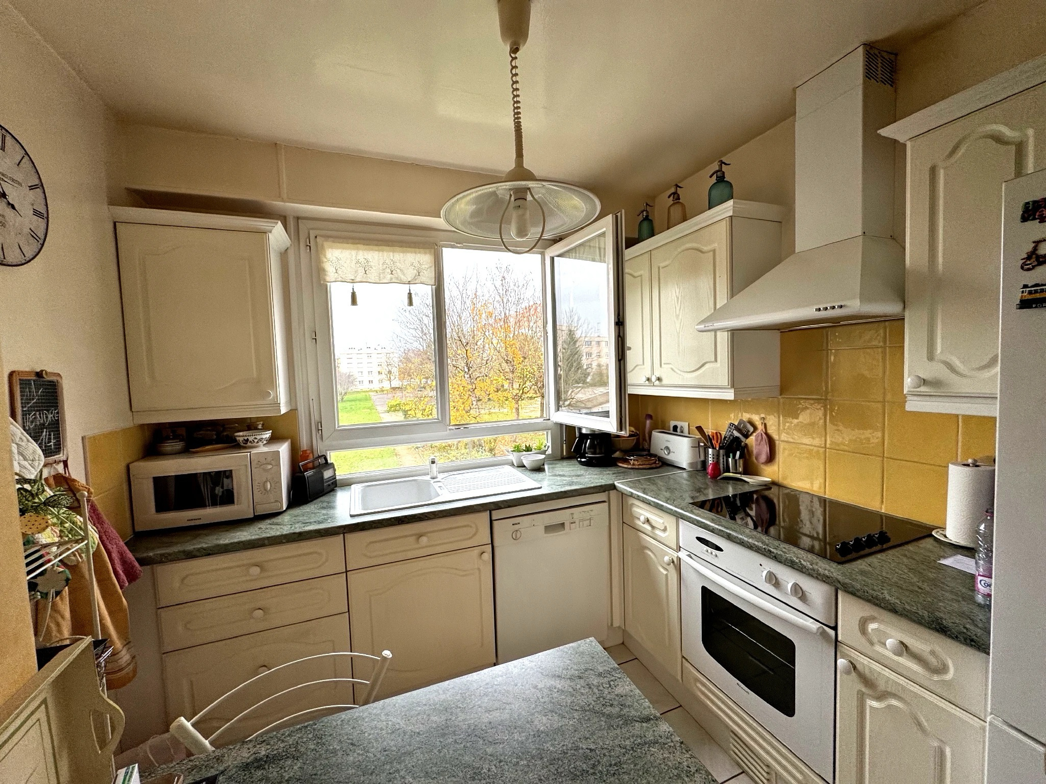 En exclusivité, quartier Maladière, un appartement T4 au 1er étage d'une copropriété proche du Tram et du centre de Dijon. Il est composé d'une entrée avec placard donnant accès à une cuisine équipée avec vue sur parc, un espace de vie très lumineux avec accès balcon, deux chambres, une salle de bain et un wc séparé. S'y ajoute une cave ainsi qu'un garage dans la copropriété.