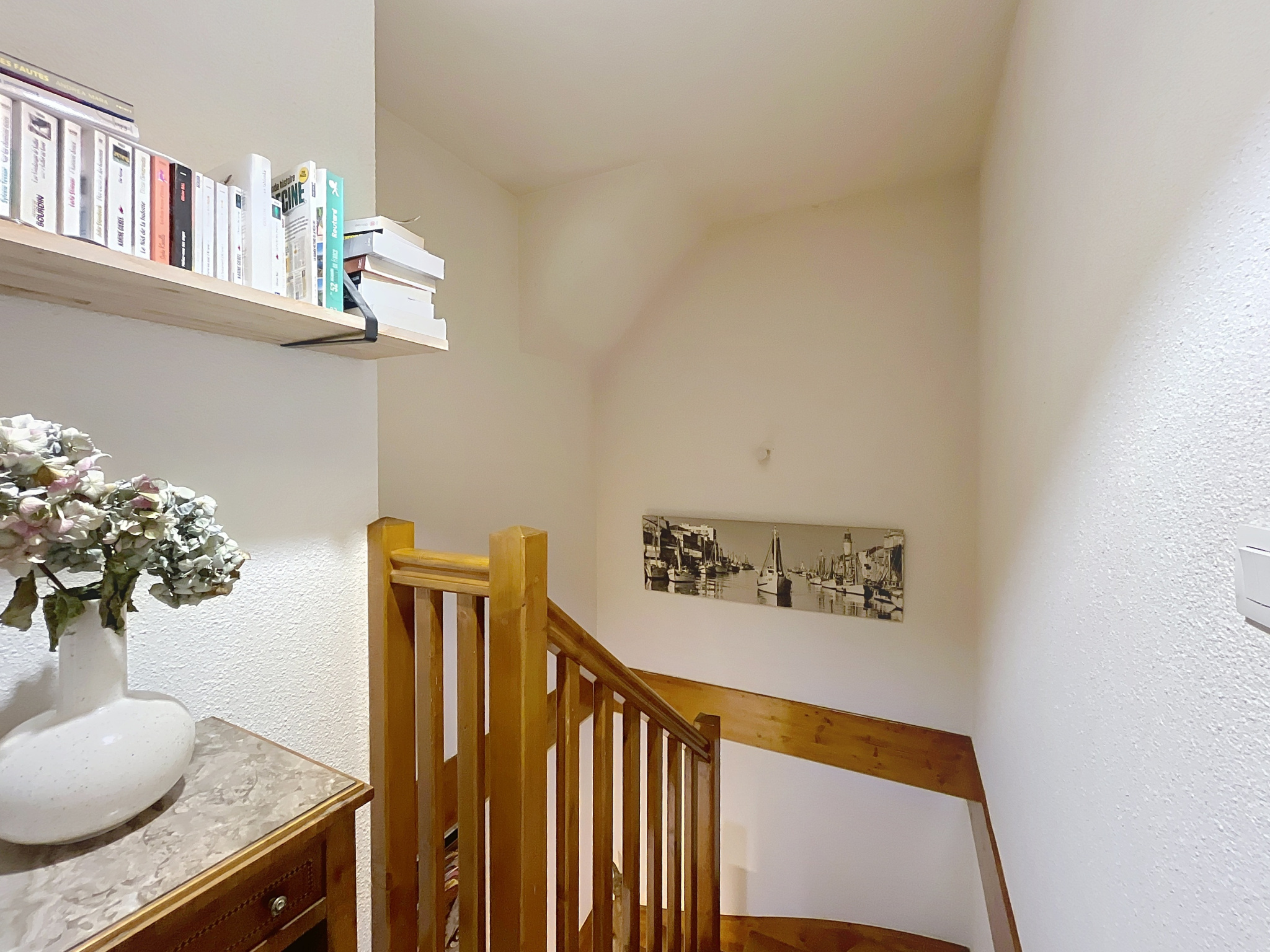 A l'étage, l'appartement propose deux agréables chambres, une salle de bain avec WC.
