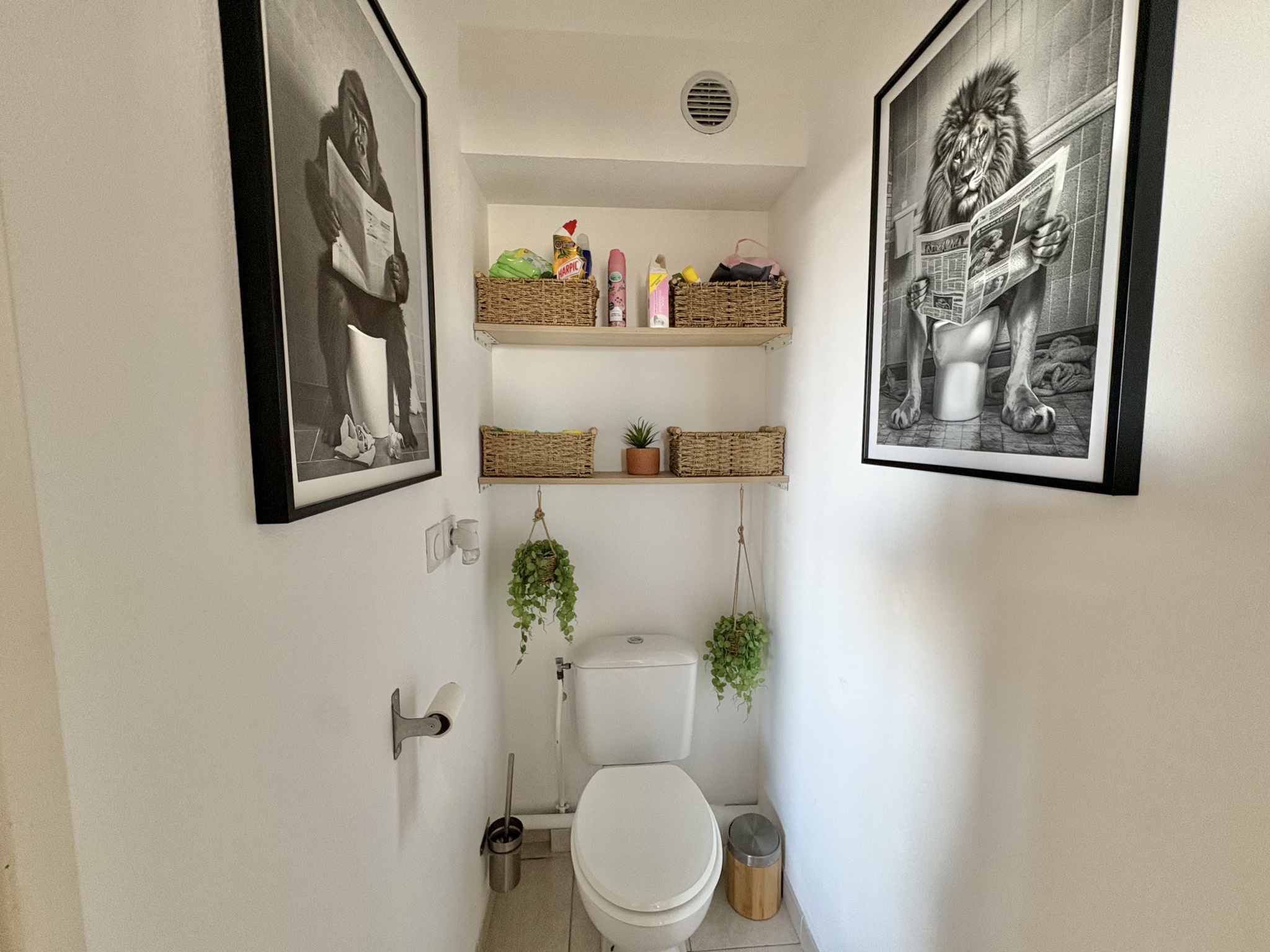 Il dispose d'un espace de vie avec cuisine ouverte et équipée, d'une chambre avec plusieurs rangements, d'une salle d'eau et des Wc séparés.