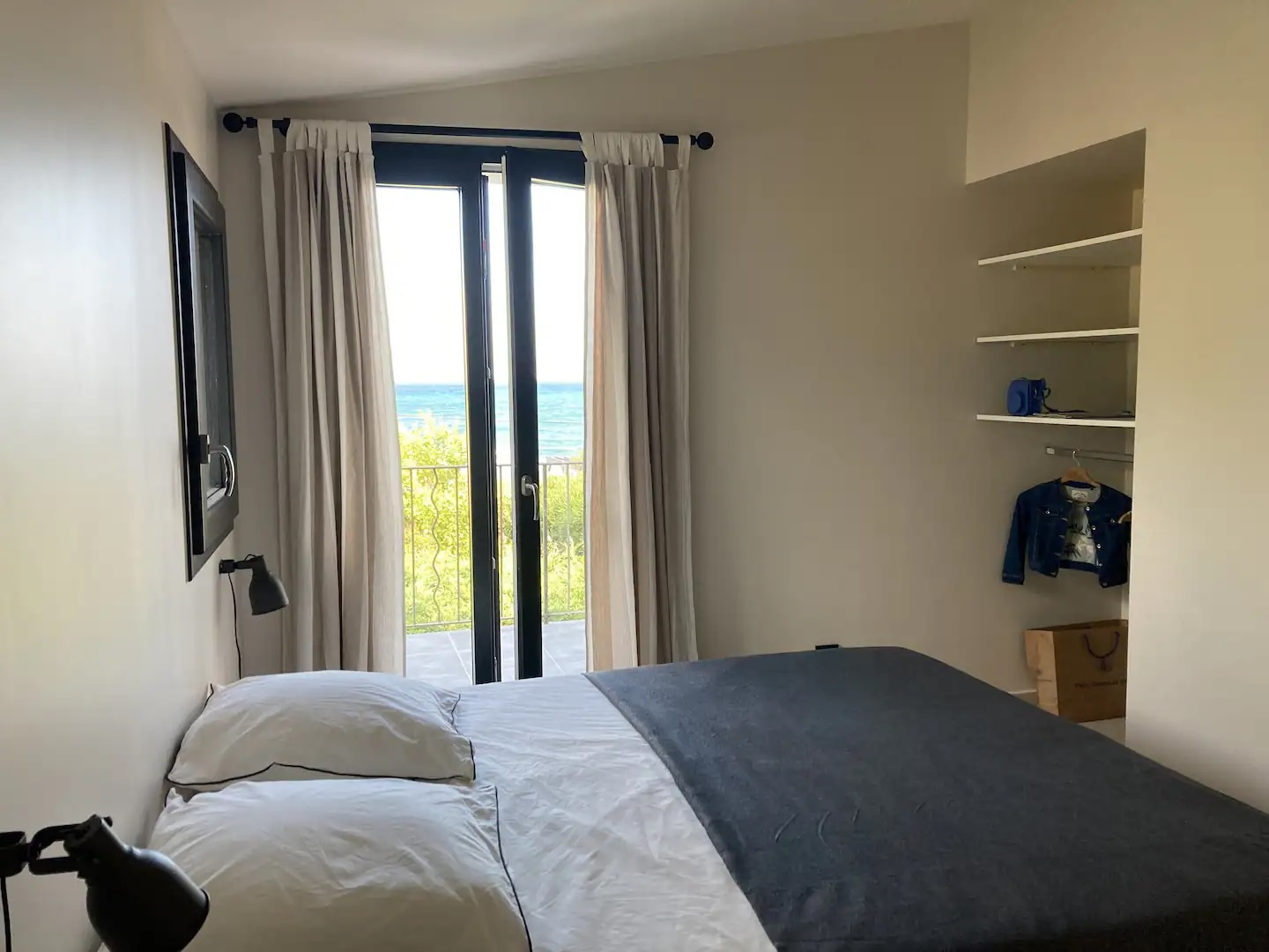 Une chambre avec salle de bain et terrasse offrant une superbe vue mer,