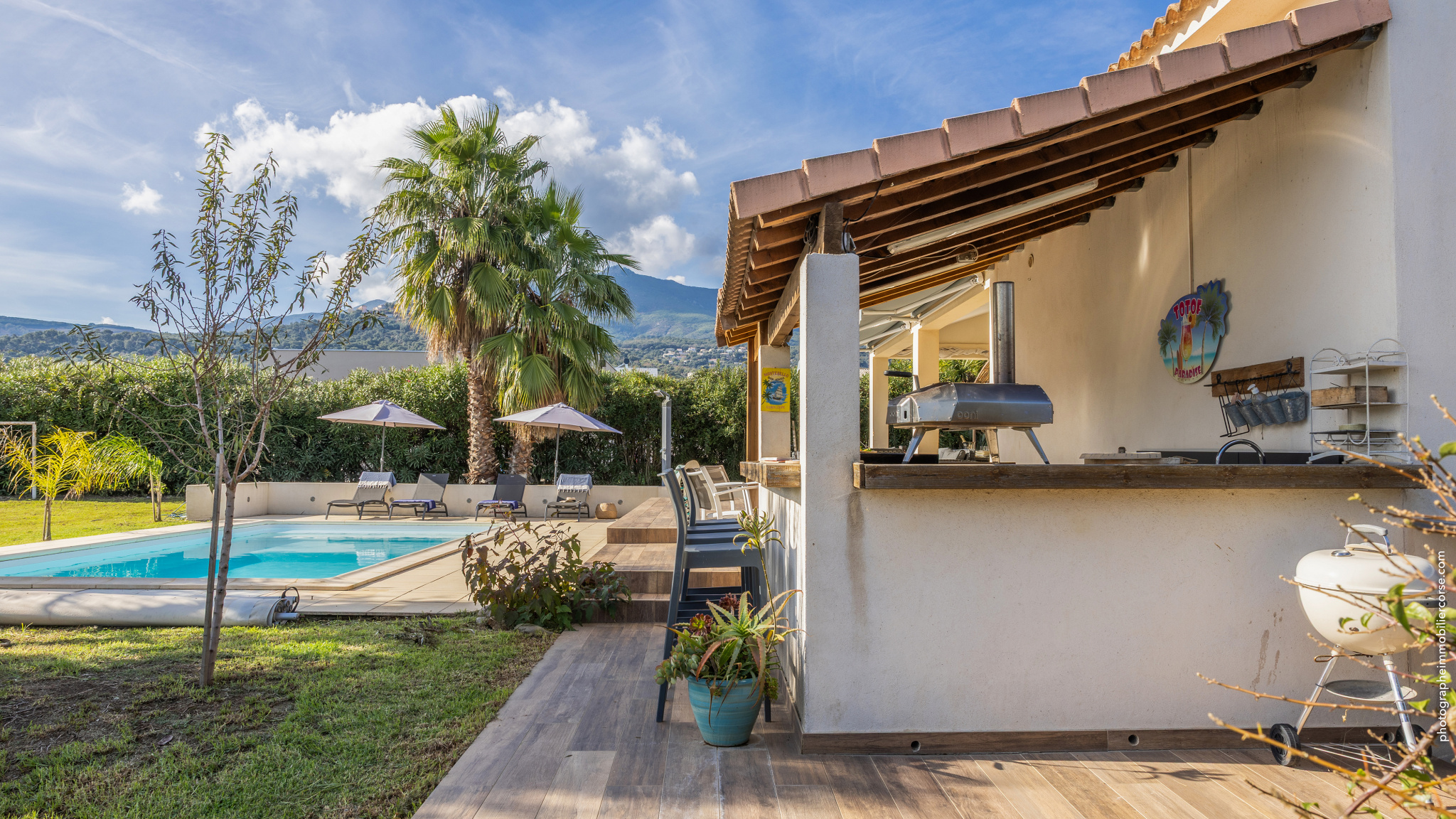 Exterieur : Sur un terrain paysager de 1 400 m2, profitez d'un environnement verdoyant et parfaitement entretenu.