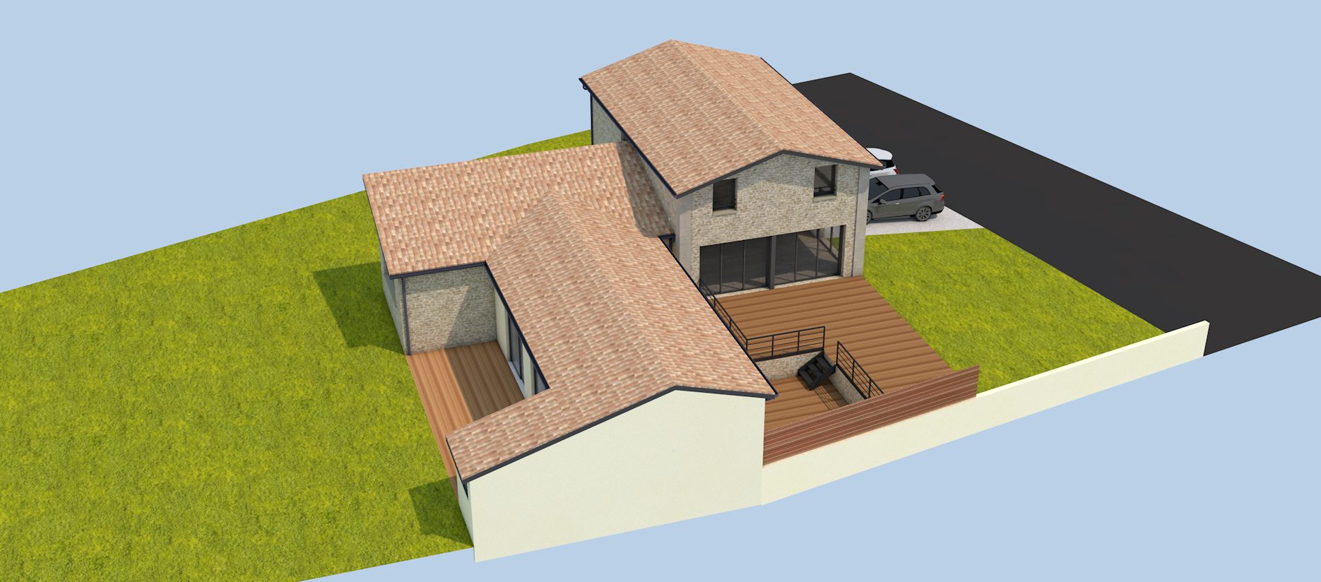 Permis de construire déposé pour 1 pièce de vie avec cuisine, 5 chambres dont une suite, 1 salle d'eau, 2 WC, Piscine couverte et terrasse. Surface totale habitable 180 m2.