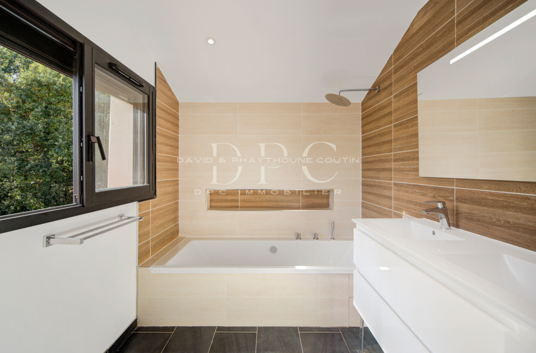 A l'étage, un grand dégagement desservant un bureau, une salle de bain avec douche et baignoire, 3 chambres dont une suite parentale de 30m2 avec sa propre salle de bain et dressing.