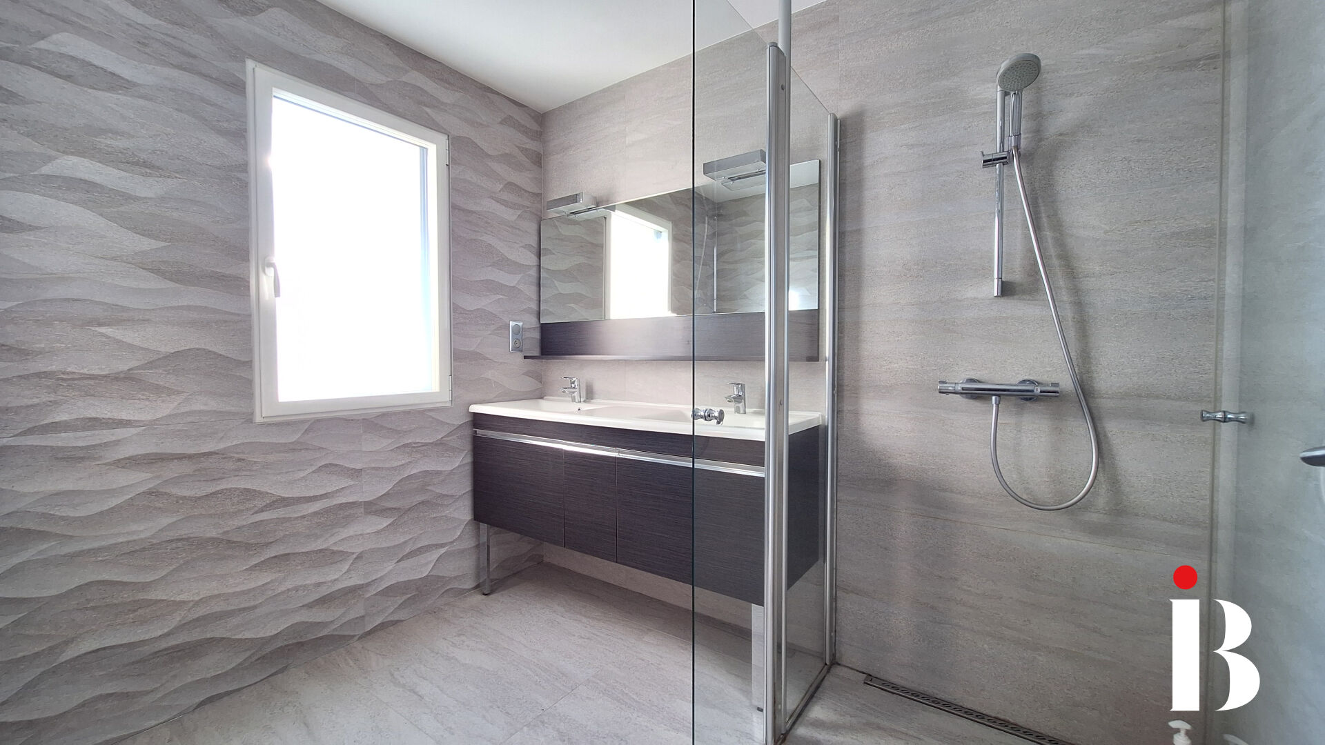 Orvault. Venez découvrir cette superbe demeure contemporaine de 2013 au prestations haut de gamme avec une vue imprenable, à proximité du PETIT CHANTILLY et des commerces. Surface habitable de 220m², cuisine équipée/aménagée avec un plan de travail en Granit, la pièce de vie vous séduira de part ces volumes ainsi que sa luminosité. Vous trouverez 3 chambres dont une suite parentale. A l'étage inférieur , 4 chambres offrant de beaux volumes, une salle de bains, une salle d'eau ainsi qu'une très belle salle de jeu ou de sport de 60m² avec coin salle d'eau et W.C. LES PLUS: Volumes généreux pour toutes les pièces, qualités des matériaux, situation idéale à l'abri des regards.