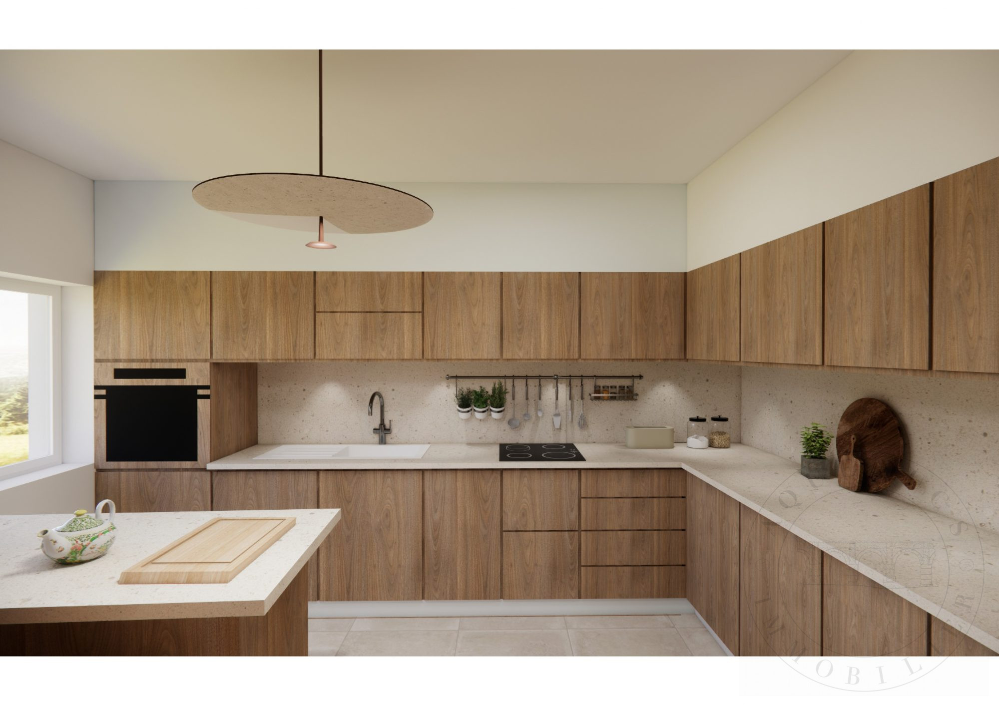 Au premier étage, une belle pièce de vie d'environ 50 m² s'ouvre sur une terrasse de 32 m² exposée plein ouest. L'espace cuisine ouvert sur le séjour est à équiper. Une salle à manger, pouvant être transformée en chambre selon les besoins, complète cet espace, ainsi qu'une salle de douche, des toilettes indépendantes, un cellier, une buanderie et un placard.