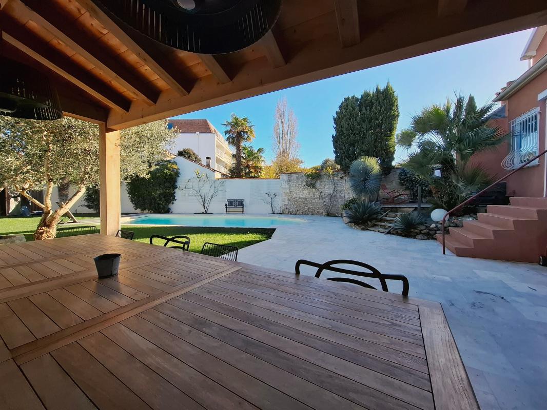 À l'extérieur, profitez d'un bel espace piscine, de terrasses aménagées, dont une terrasse couverte à l'abri des regards, parfaite pour les longues soirées d'été, barbecue à portée de main.