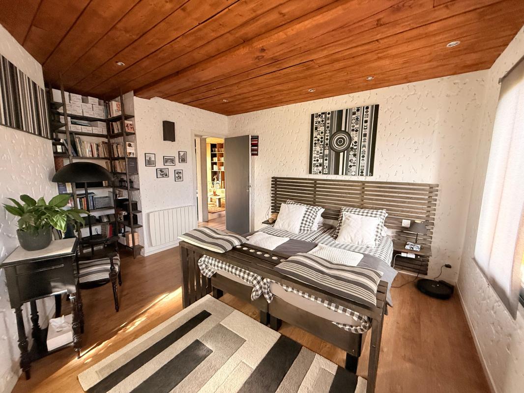 Au rez de chaussée, vous trouverez un séjour salon avec poêle à bois, une cuisine équipée avec cellier, une suite parentale avec dressing et douche à l'italienne, une chambre, un WC indépendant et un accès à la terrasse part ses grandes baies lumineuses.