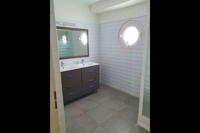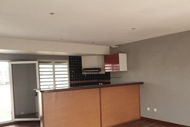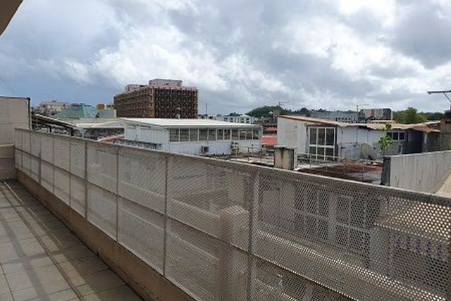Un appartement en centre ville de Pointe à Pitre de type T3 de 80,23m² de superficie habitable comprenant : une grande terrasse de 14,02m², une entrée de 6,56m², un dégagement, un séjour de 24,94m², une cuisine à l'américaine de 10,43m² aménagée de placards et semi-équipée (plaque chauffante et hotte aspirante) deux chambres de 10,02 et 12,29m², une salle d'eau de 6,13m²avec meuble de rangement et miroir, un dressing, une buanderie (avec le chauffe-eau et emplacement de machine à laver) et un WC indépendant. Soit une superficie totale de 120,86m²