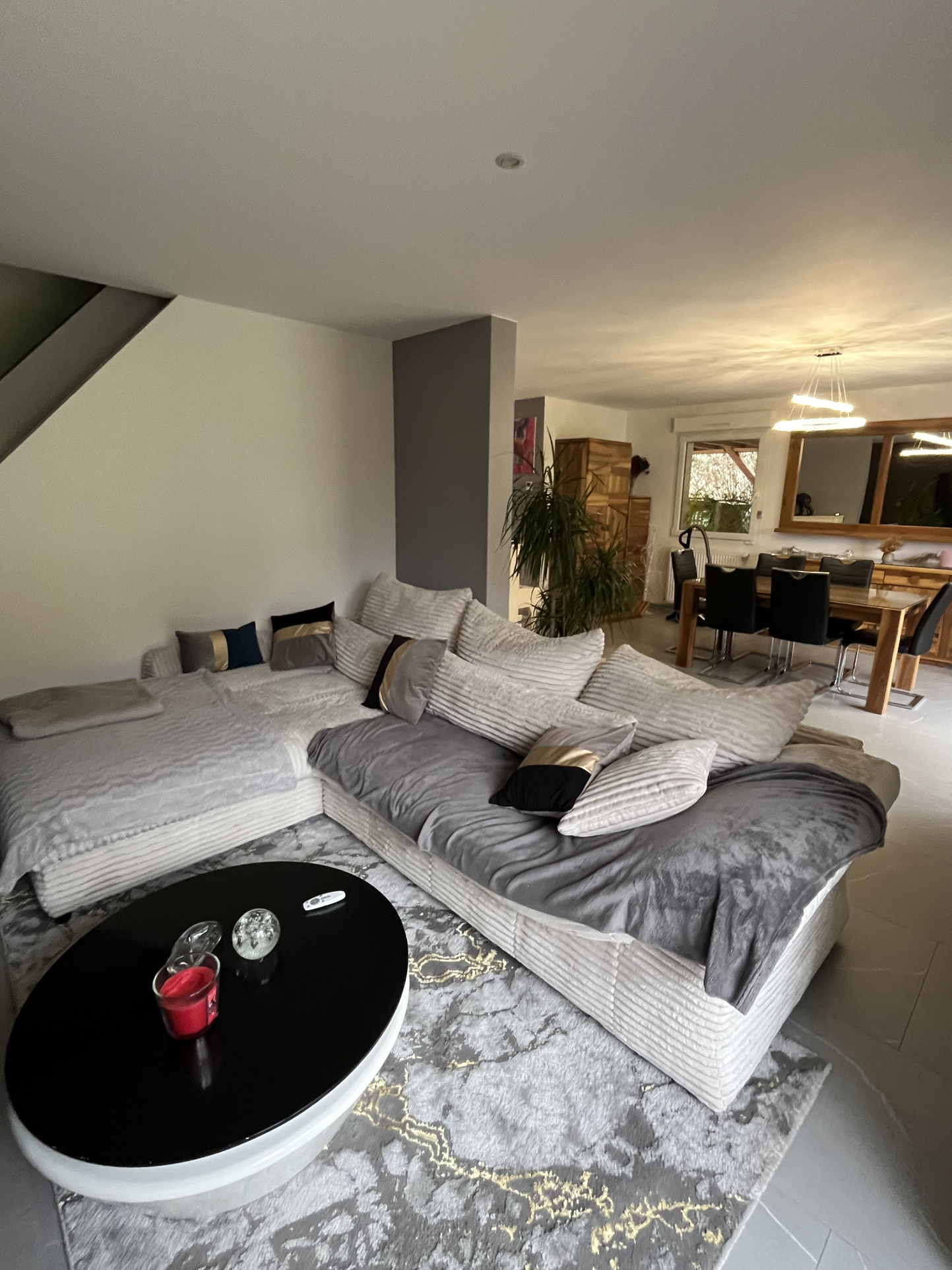 Maison mitoyenne d'un coté bénéficie d'un sous-sol complet : un vaste garage , une cave, ainsi qu'une grande pièce ( 19 m2 ) qui pourra devenir, selon vos projets, une salle de sport, un espace de travail, un atelier ou même une chambre d'amis.