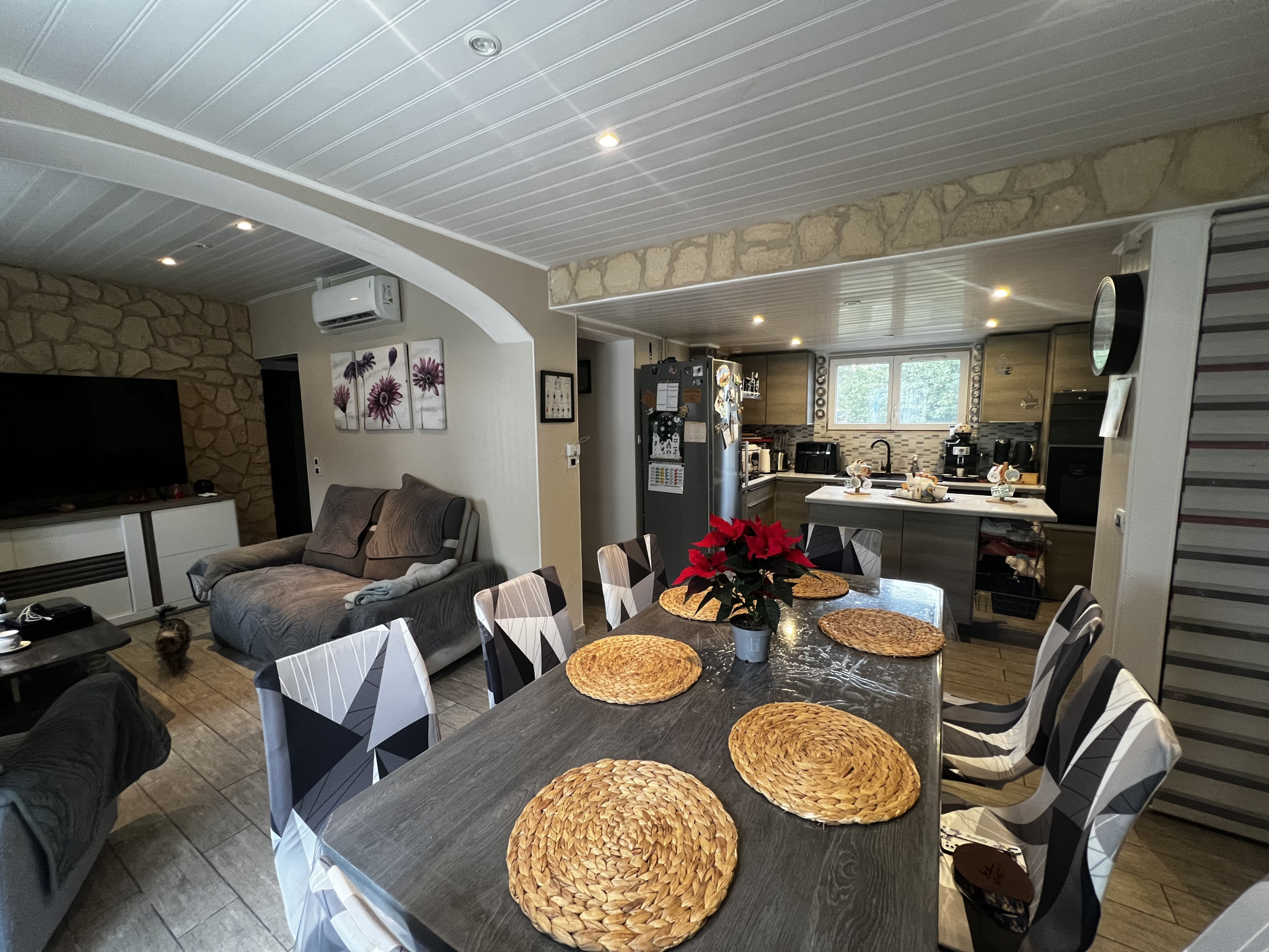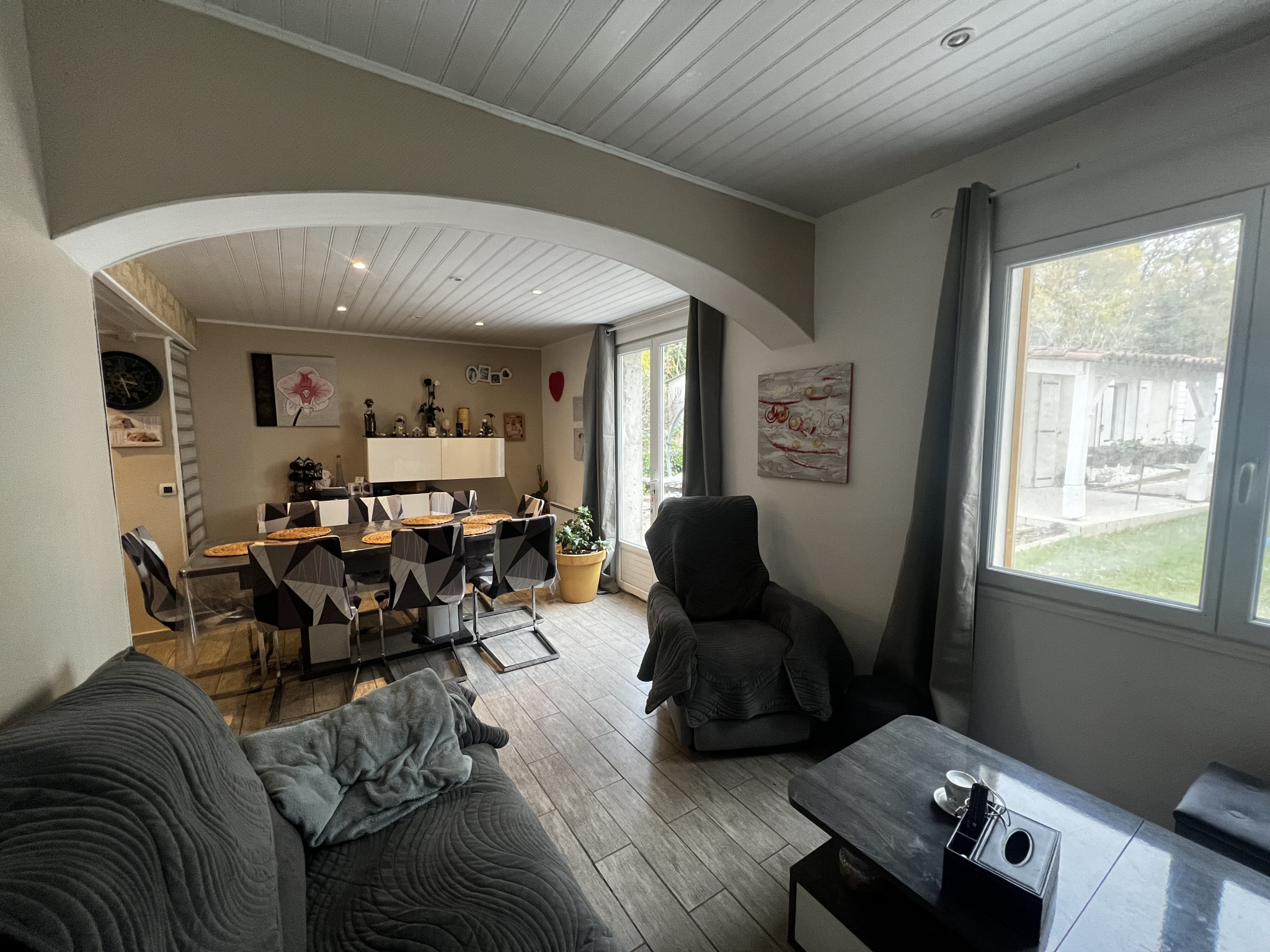 Située dans un environnement verdoyant proche de Mirambeau, venez découvrir cette maison de plain pied d'environ 80m2, elle offre une belle entrée, une jolie cuisine aménagée et équipée d'environ 10m2 ouverte sur la pièce de vie et salon cosy de 21m2, deux chambres de 11et 10m2, un bureau, un beau dressing, une salle d'eau et un WC indépendant. Une petite maison indépendante d'environ 26m2 comprenant une pièce de vie, une chambre et salle d'eau avec WC laissera place à votre imagination, elle peut vous permettre un rapport locatif ou accueillir votre famille ou vos amis, vous découvrirez attenant à celle-ci un garage. A l'extérieur propice à la détente, un jardin d'environ 1200m2 entièrement clôturé et arboré avec des arbres fruitiers et d'autres variétés, pour des parties entre amis un terrain de pétanque est à votre disposition. Vous pourrez contempler également un bassin avec ses carpes Kïo. La maison est chauffée par une pompe à chaleur air/eau et possède des panneaux solaires. Pour visiter ce bien contactez Patricia Solana au 06 45 39 74 71 ou par mail : patricia.solanalgimmo@gmail.com