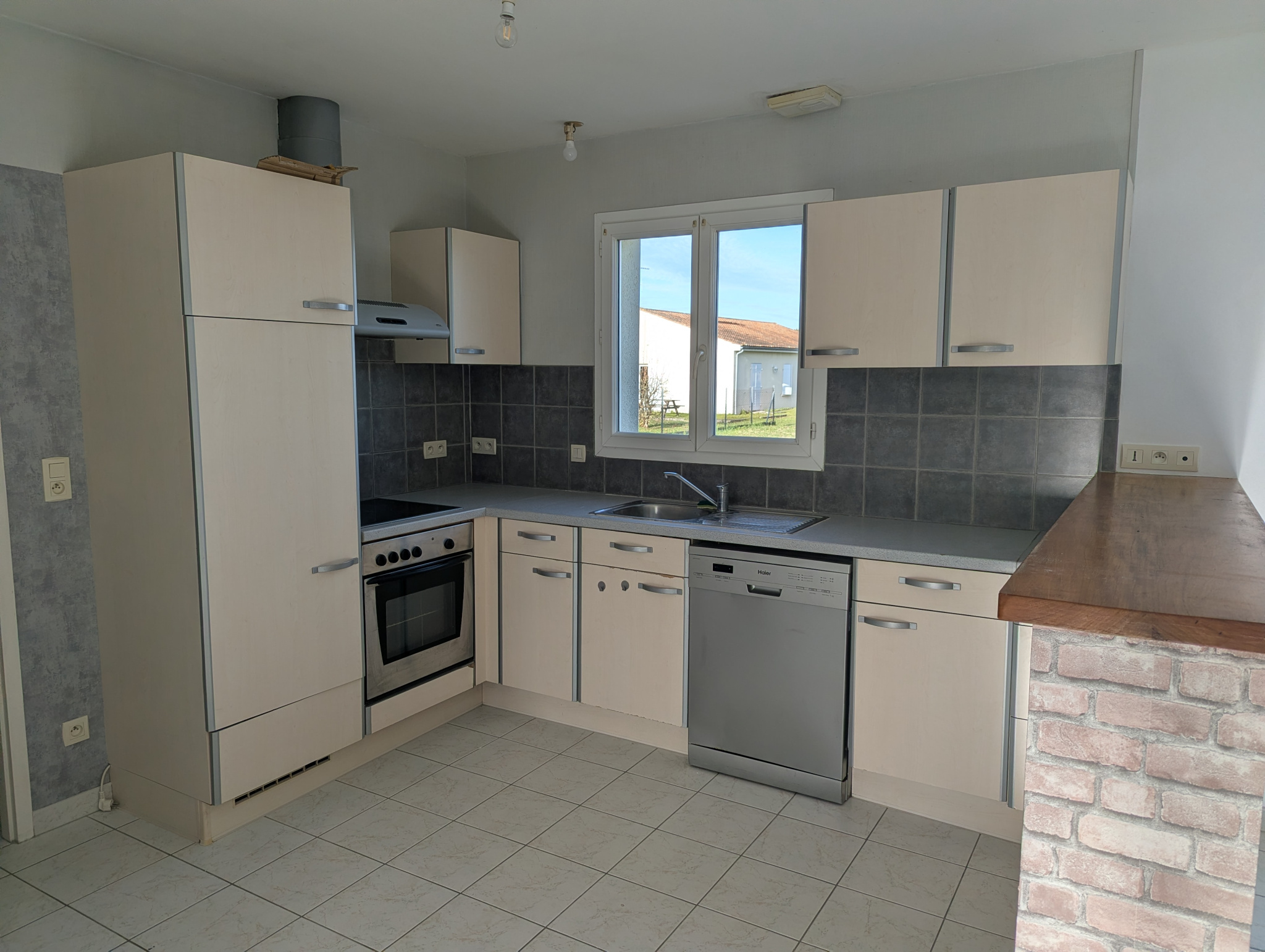 L'agence - LG IMMO - Cabinet GARÉCHÉ vous propose cette charmante maison de plain pied datant de 2005 composée d'un séjour de 31.50 m2, d'un coin cuisine de 9.45 m2, un cellier de 4.50 m2. Un couloir de 2.55 m2 dessert 3 chambres, une de 11.95 m2 et deux de 9.75 m2 chacune avec placards intégrés, une salle de bains de 5.15 m2 et un wc séparé de 1.55 m2. Un garage de 17.80 m2 et un jardin de 1030 m2 environ complètent ce bien. Le système de chauffage est électrique et la maison est raccordée au tout à l'égoût. Située au calme, proche de toutes commodités, venez découvrir cette maison en contactant Sarah MAILLOCHAUD au 06.22.97.42.65 ou au 05.64.31.00.75 ou sur sarah.maillochaudlgimmo@gmail.com