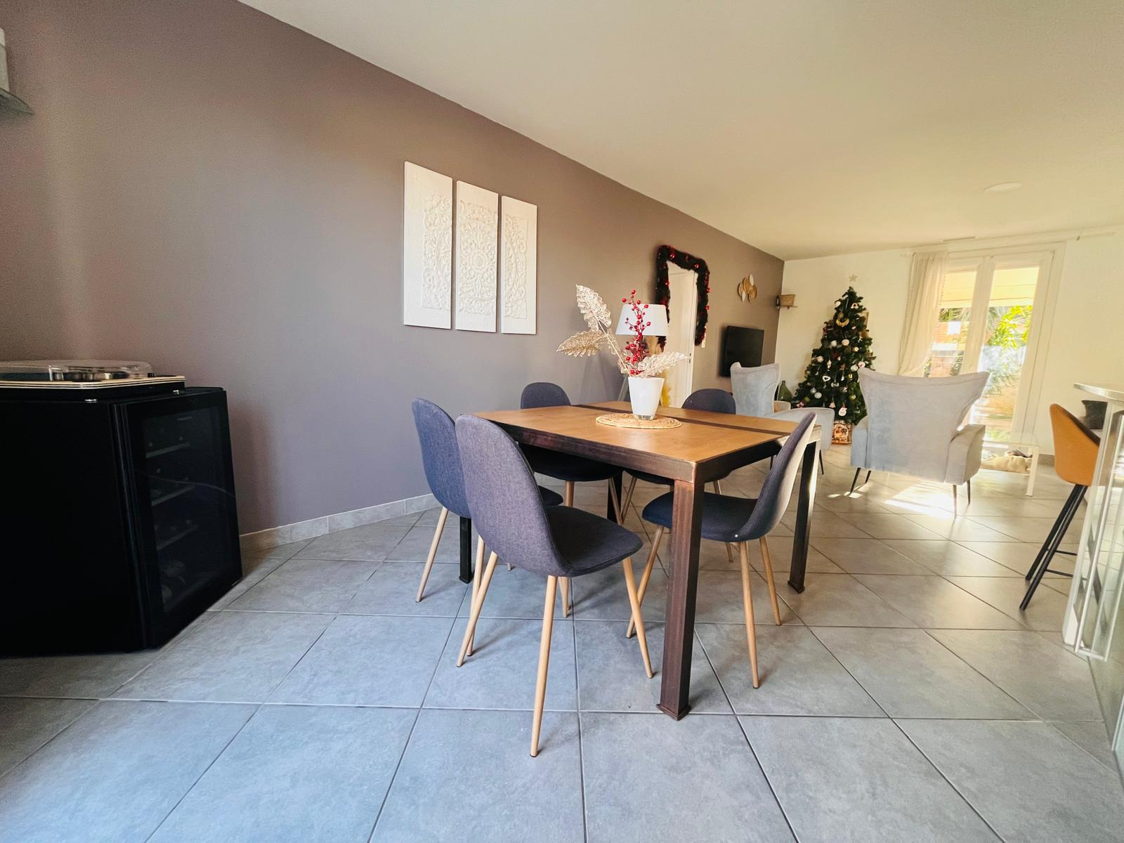 Vous y trouverez une spacieuse pièce de vie lumineuse, ouverte sur une cuisine équipée moderne. L'agencement, pensé pour le quotidien, propose trois chambres, un bureau, une salle de bains, une salle d'eau avec WC + un second WC indépendant ainsi que de plusieurs rangements intégrés.