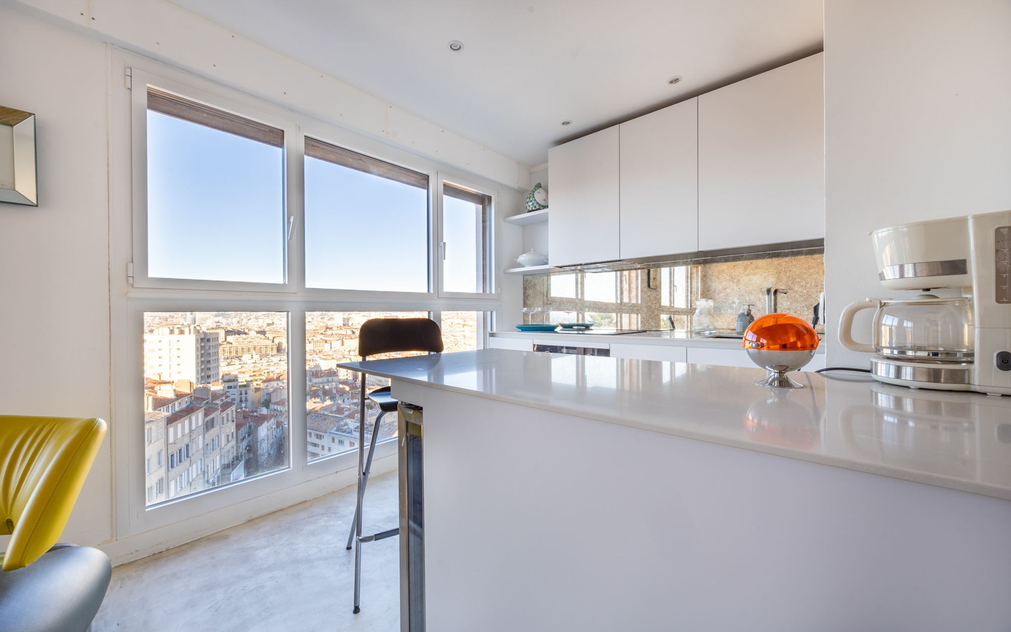 Dans une résidence de standing sécurisée avec gardien, découvrez ce superbe appartement T2 traversant de 44 m2 Loi Carrez, entièrement rénové avec goût. Situé au 6ème étage avec ascenseur, il offre un séjour lumineux avec une vue imprenable sur la ville, le Vieux-Port et la mer. La chambre s'ouvre sur un balcon sans vis-à-vis, idéal pour profiter de moments de calme face à Notre-Dame de la Garde. La cuisine contemporaine est ouverte sur le séjour, de nombreux rangements et une buanderie complètent l'ensemble. Vous apprécierez également le beau parquet et l'état impeccable de ce bien. Les charges incluent le chauffage et le gardien. Possibilité de stationnement dans la résidence. Proche des écoles, commerces, accès autoroutes, Parc du Jardin de la Colline et transports en commun, cet appartement est très agréable à vivre. Les informations sur les risques auxquels ce bien est exposé sont disponibles sur le site Géorisques : www.georisques.gouv.fr