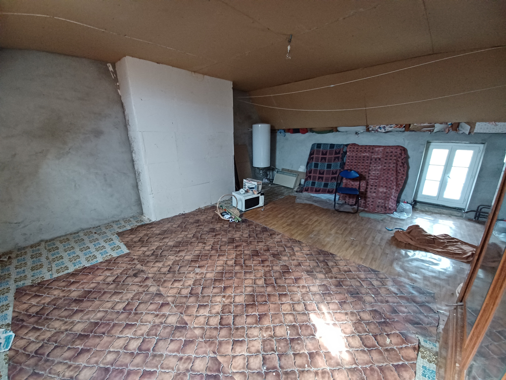 A l'étage une grande chambre et grenier facilement accessible et aménageable d'env 28m2.