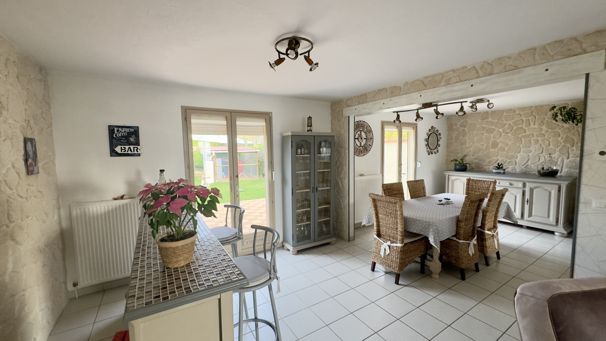 Dès l'entrée, vous serez séduits par son ambiance chaleureuse et son agencement optimisé. La pièce de vie de 50 m2, conviviale et lumineuse, s'ouvre sur une cuisine équipée pratique et agréable pour les repas du quotidien.