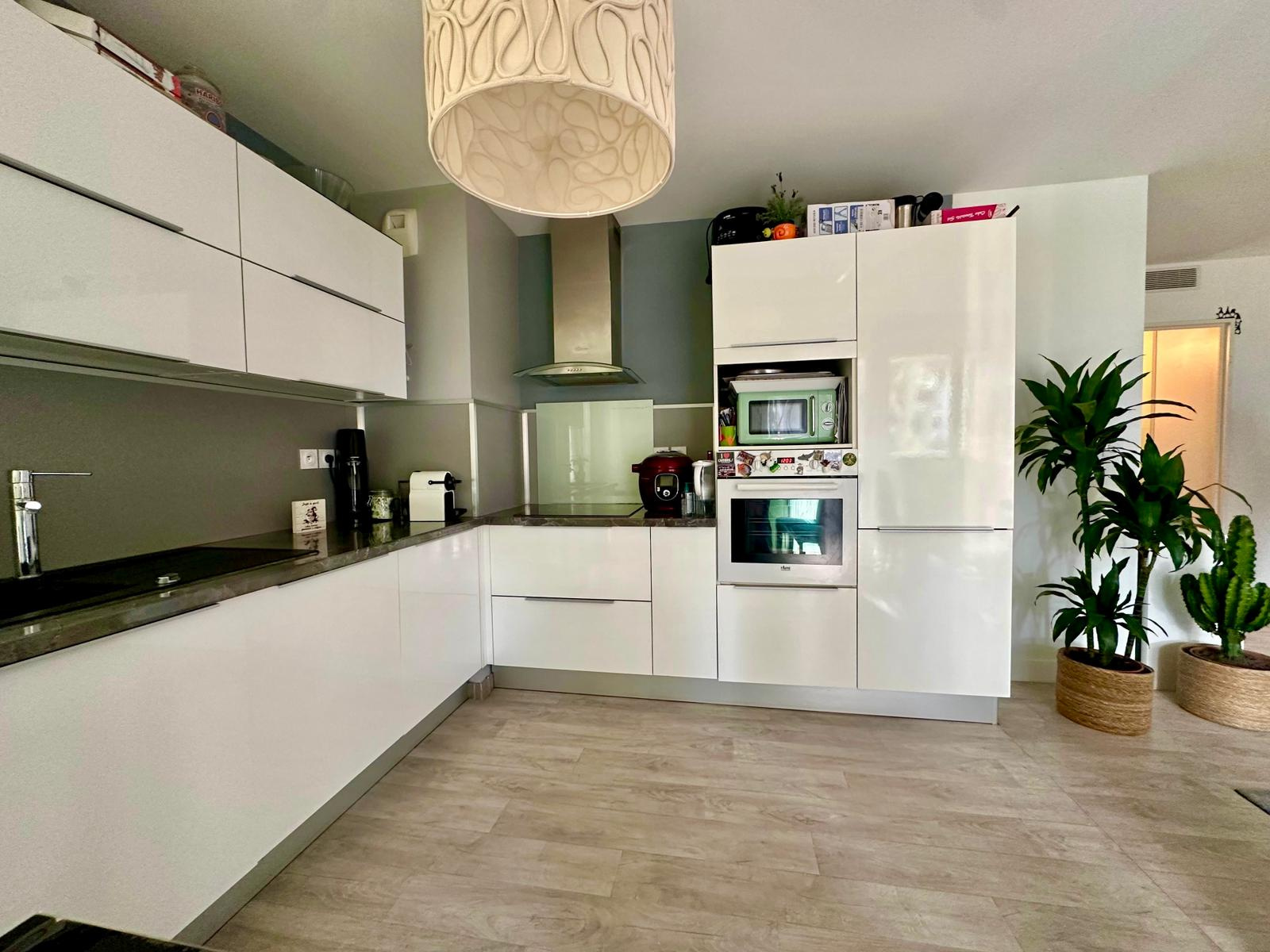 Dès l'entrée, un espace accueillant mène naturellement vers un salon prolongé par une salle à manger et une cuisine ouverte entièrement équipée. L'ensemble s'ouvre sur une double terrasse de 23 m2, baignée de lumière grâce à son exposition sud-ouest.
