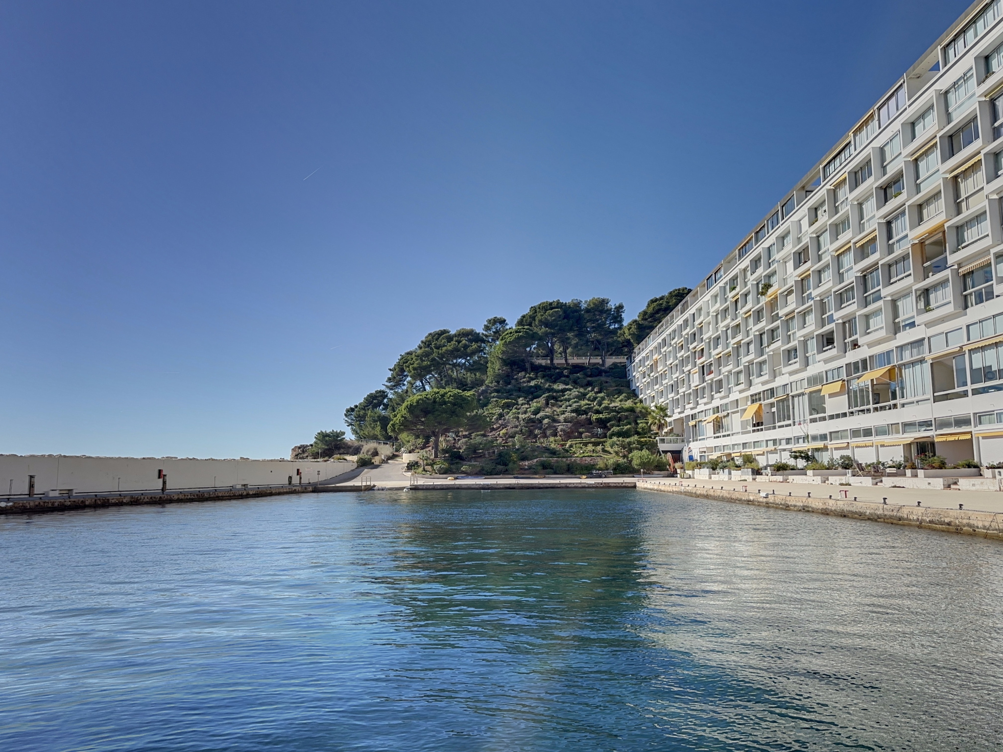 Dès l'entrée, le séjour baigné de lumière dévoile une vue mer délicate et apaisante, prolongée par l'accès direct au port privatisé, véritable privilège réservé aux résidents. L'environnement verdoyant et parfaitement entretenu confère à ce lieu une atmosphère exclusive, idéale pour des instants de détente en famille ou entre amis.