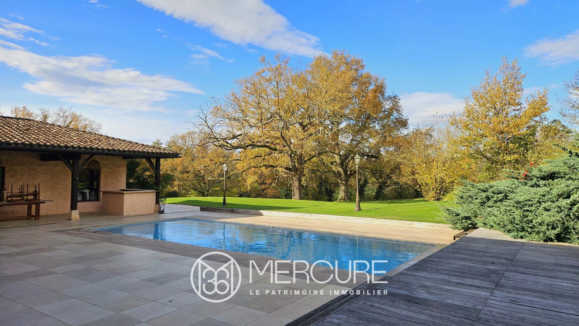 Les extérieurs composent un cadre de vie exceptionnel : piscine avec terrasse carrelée dominant le parc, court de tennis à réhabiliter,...