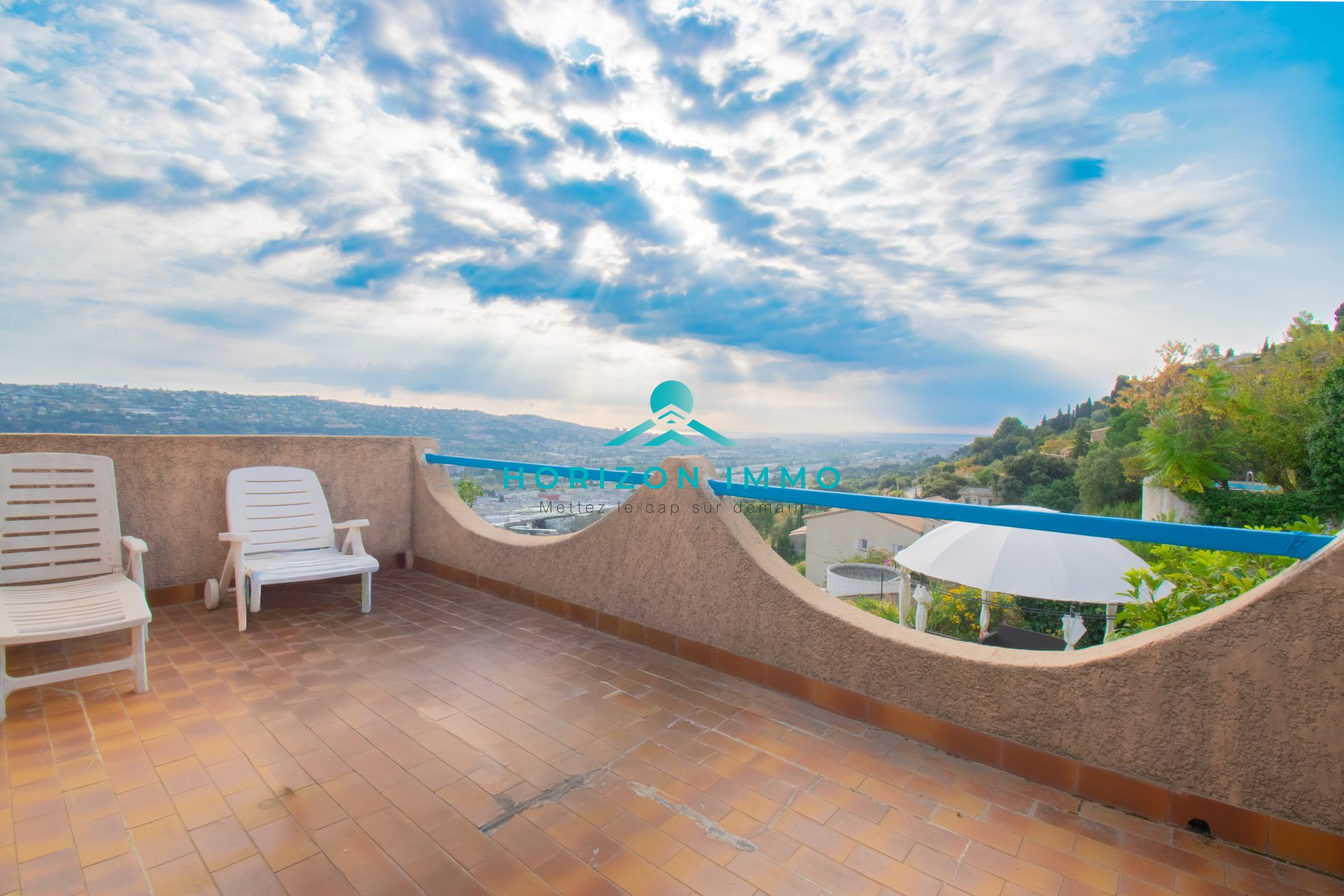 Sur les hauteurs de Saint Laurent du Var, offrant une vue dégagée sur Nice jusqu'à la Mer.