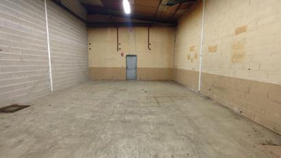 L'entrée principale, via une porte sectionnelle motorisée, dessert un premier espace d'environ 43 m2, pouvant servir de zone de stationnement utilitaire, de zone de déchargement ou de premier espace d'exploitation.