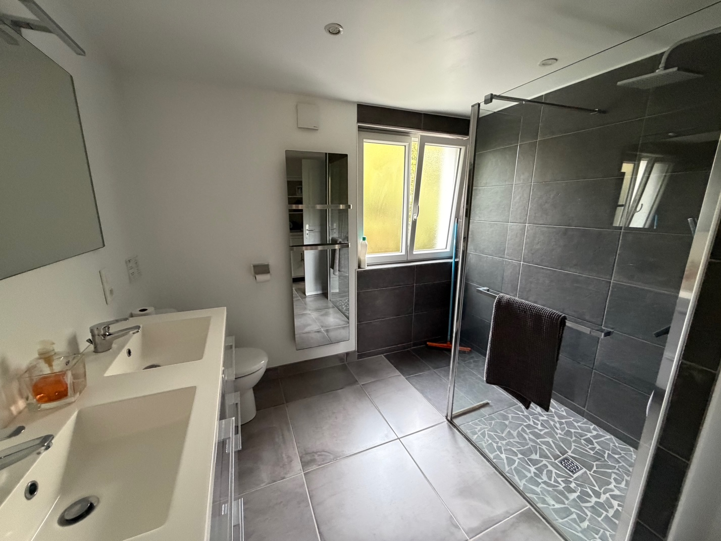 Le rez-de-chaussée aménagé de plain-pied comprend un séjour lumineux avec cuisine ouverte, deux chambres, une salle d'eau, des WC séparés, ainsi qu'une grande terrasse donnant sur un superbe jardin arboré de 2 895 m². L'étage, réparti sur deux niveaux, offre au rez-de-chaussée une spacieuse pièce de vie avec salon et cheminée, une salle à manger ouvrant sur une terrasse, une cuisine équipée, une deuxième vaste terrasse sans vis-à-vis dominant un charmant ruisseau, une salle de bains avec baignoire et douche, un WC séparé et une chambre. À l'étage supérieur, vous trouverez une salle d'eau, un espace mezzanine idéal pour un bureau ou une salle de jeux, ainsi que trois chambres confortables. Un bien rare dans un environnement paisible, idéal pour une grande famille ou pour recevoir chaleureusement vos proches.