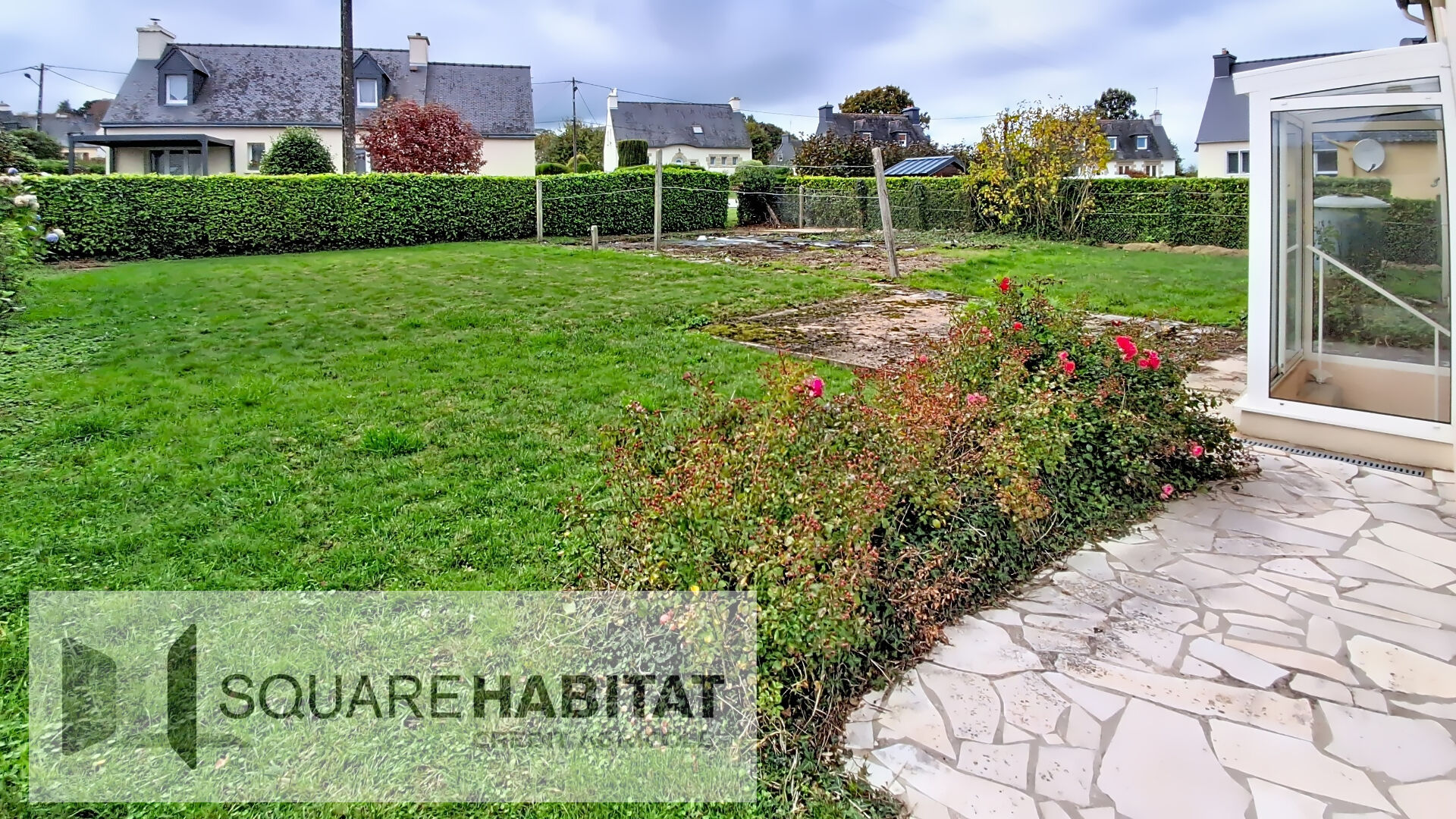 A GOUAREC (22570), cette solide néo Bretonne, avec vie de plain pied, proche de toutes les commodités (écoles, pharmacie, médecins, piscine...) et située à deux pas du canal de Nantes à Brest, du lac de Guerlédan et de l'abbaye de Bon repos, comprend: