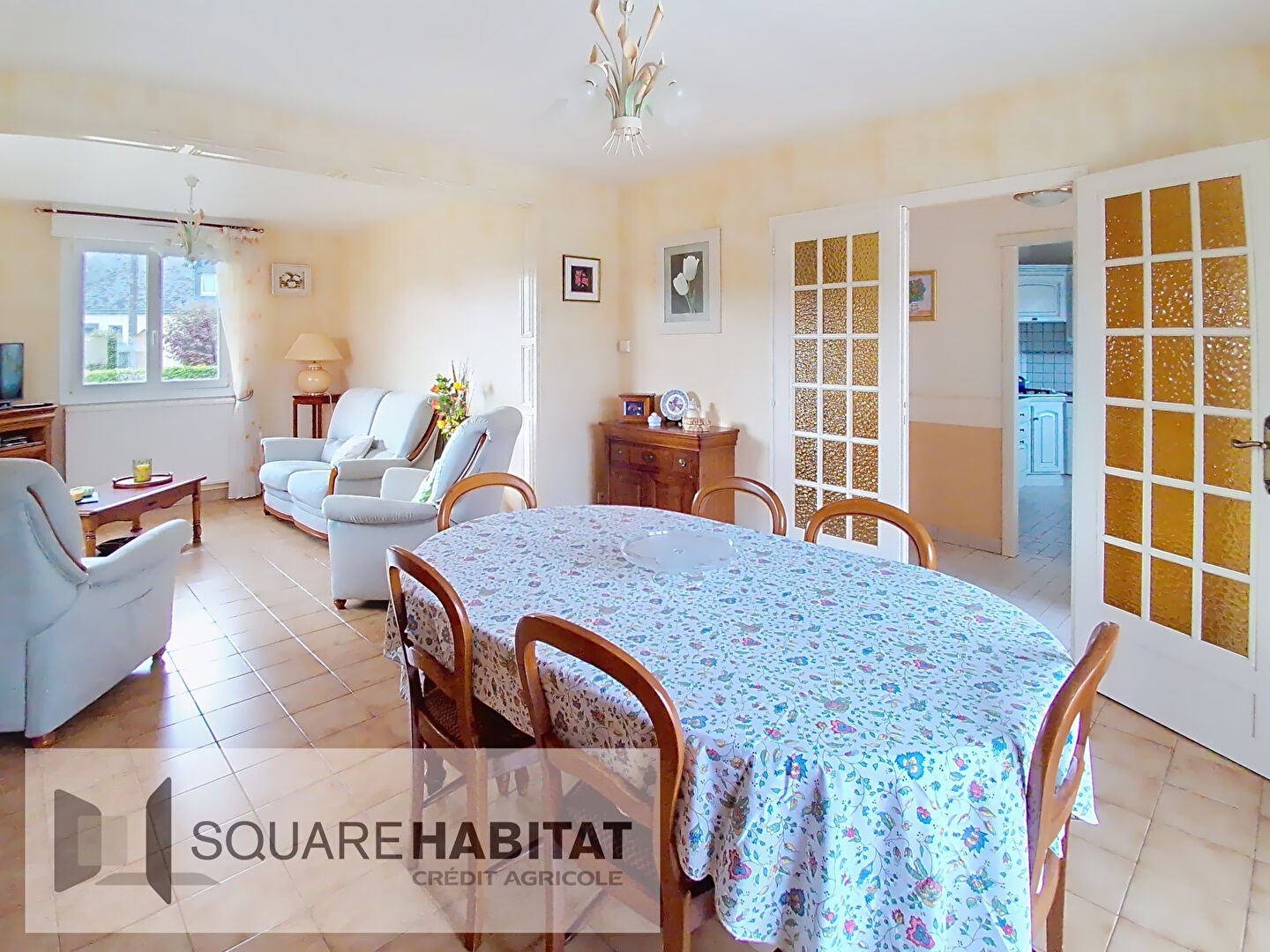 Au rez-de-chaussée surélevé: entrée, salon/salle à manger, cuisine indépendante, deux chambres, salle d'eau et WC.