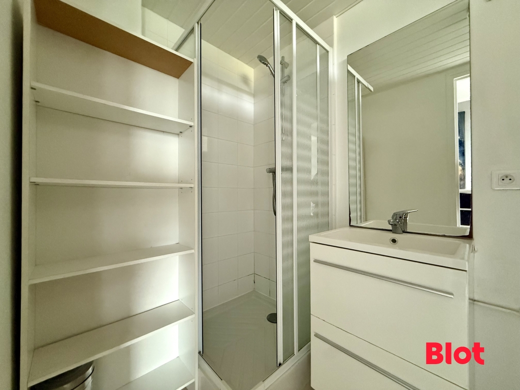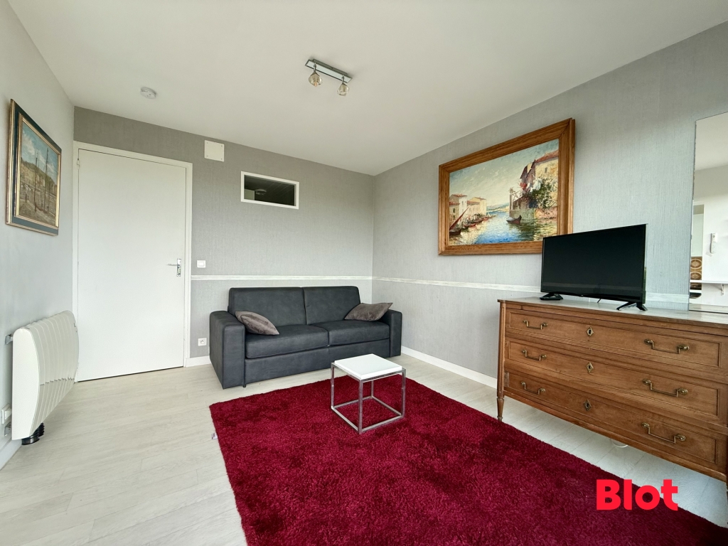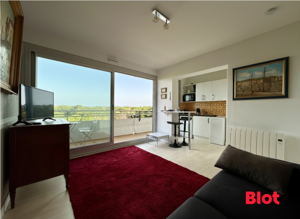 Situé au 5? étage d'une résidence sécurisée avec gardien et ascenseur, il offre une entrée avec rangements, une pièce de vie baignée de lumière avec cuisine ouverte, ainsi qu'une salle d'eau avec WC.